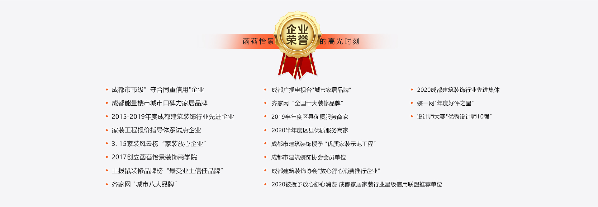 自2009年成立以來(lái),菡萏怡景深耕裝飾裝修行業(yè)16年,一路成長(zhǎng),一路收獲,先后榮膺2013中國(guó)家居總評(píng)榜中國(guó)家裝整裝領(lǐng)導(dǎo)品牌、2014榜樣中國(guó)·傳媒大獎(jiǎng)魯班金獎(jiǎng)、2018年誠(chéng)信典范十佳單位、2021年成都放心舒心消費(fèi)服務(wù)試點(diǎn)企業(yè)等20項(xiàng)榮譽(yù)。