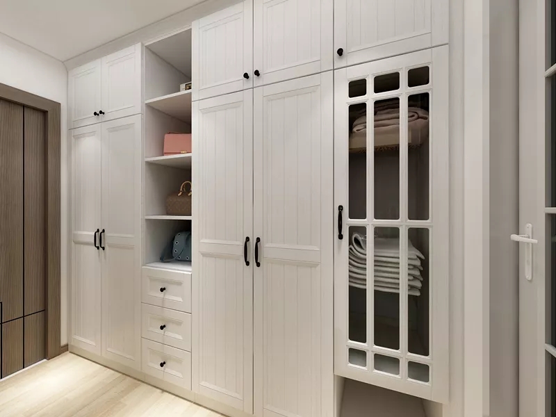 ? 家具圓弧邊角守護(hù)老人安全。相對(duì)于年輕人重視臥室的私密性,老人房更需要的是安全性和舒適度。因此,設(shè)計(jì)師選擇了圓弧形轉(zhuǎn)角的定制衣柜,避免老人磕碰受傷。定制衣柜的開放式掛物區(qū),可以方便老人掛放帽子和拿取常用物品。睡覺前,老人還可以把墊背用的抱枕放進(jìn)衣柜的鏤空區(qū)域,省去了開關(guān)柜門的步驟。