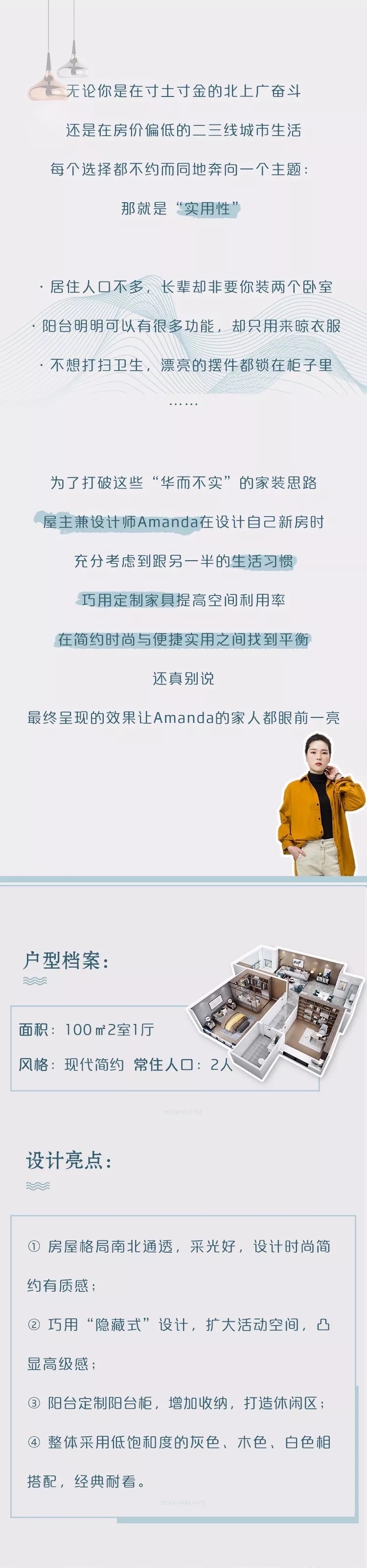 ??屋主兼設(shè)計師在設(shè)計自己的新房時充分考慮到跟另一半的生活習(xí)慣,巧用定制家具提高空間利用率,在簡約時尚與便捷實用之間找到平衡。還真別說,最終呈現(xiàn)的效果讓設(shè)計師的家人都眼前一亮。
