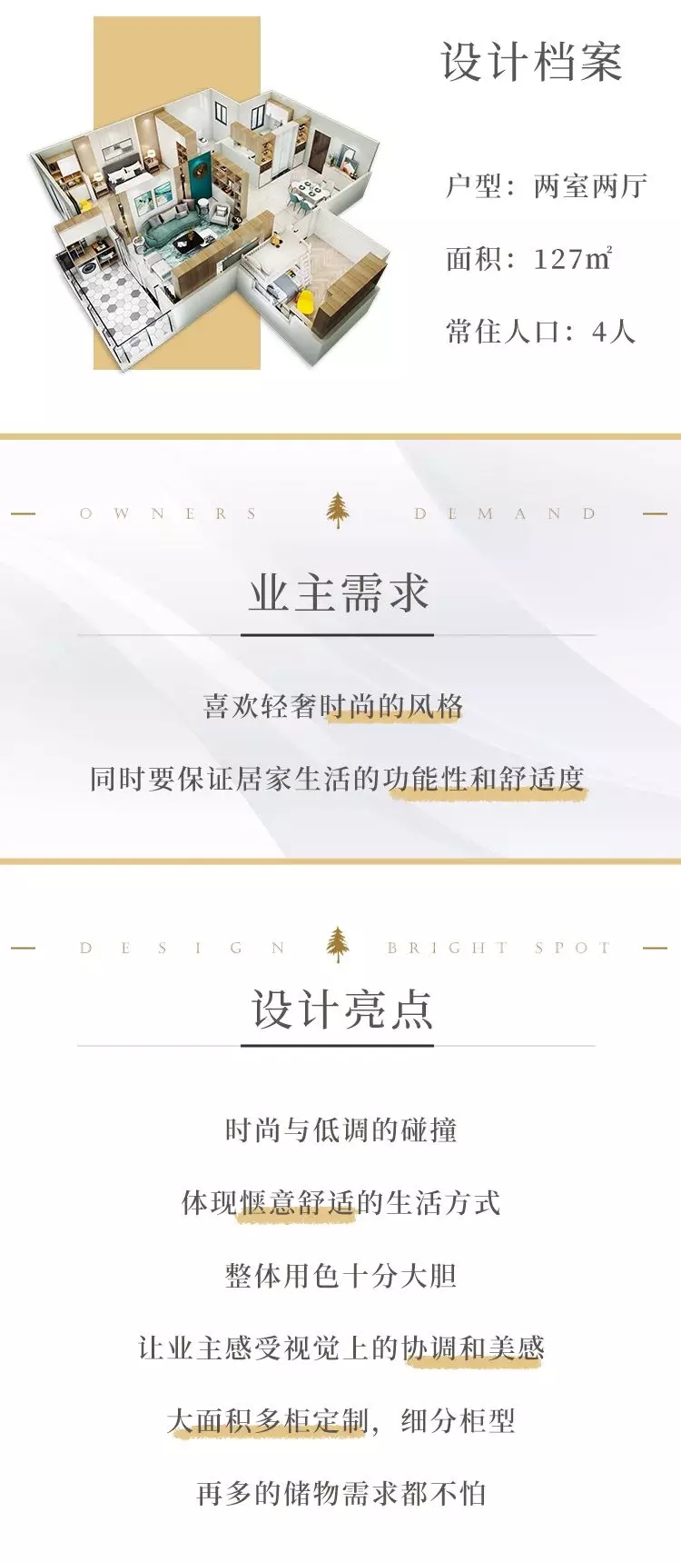 ??業(yè)主喜歡輕奢時(shí)尚的風(fēng)格,同時(shí)要保證居家生活的功能性和舒適度。設(shè)計(jì)師整體用色十分大膽,給人以視覺上的協(xié)調(diào)和美感。大面積多柜定制,細(xì)分柜型,再多儲(chǔ)物需求都不怕。