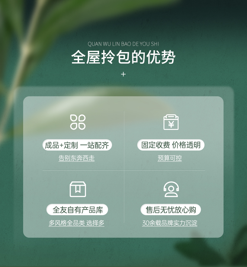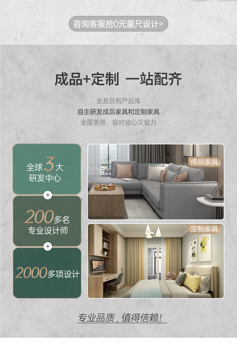全友全屋套裝【成品+定制】拎包入住,39800元全屋套餐,具體金額以設(shè)計(jì)方案為準(zhǔn),歡迎店內(nèi)詳詢。