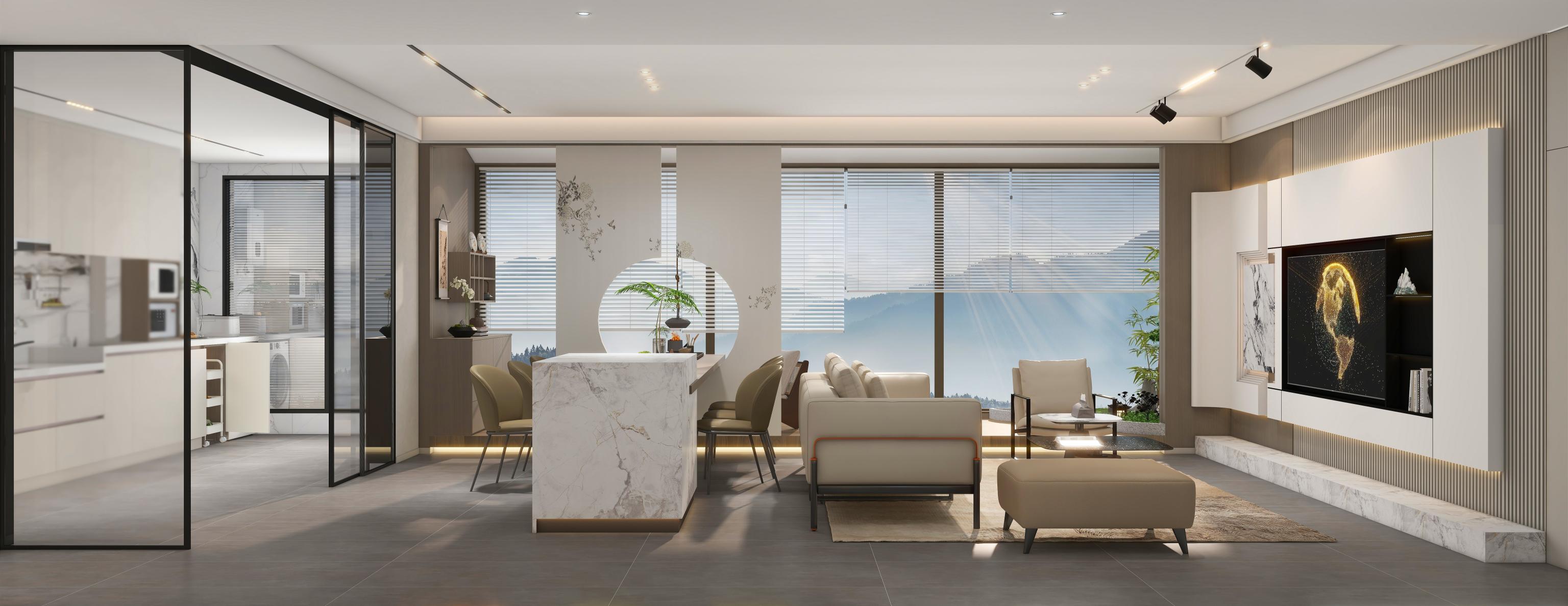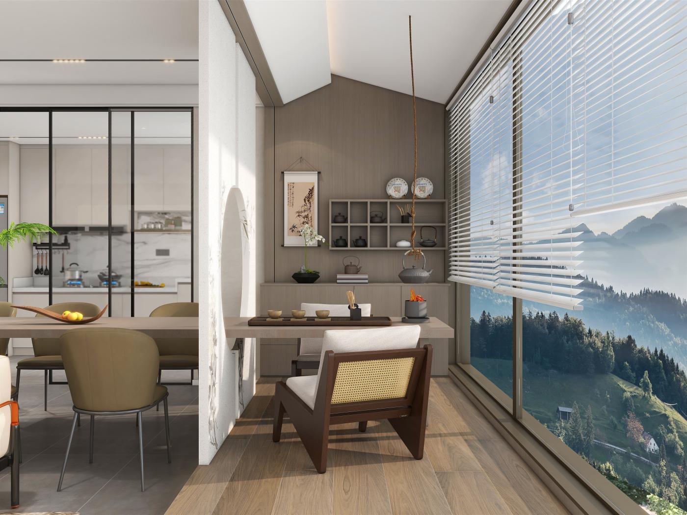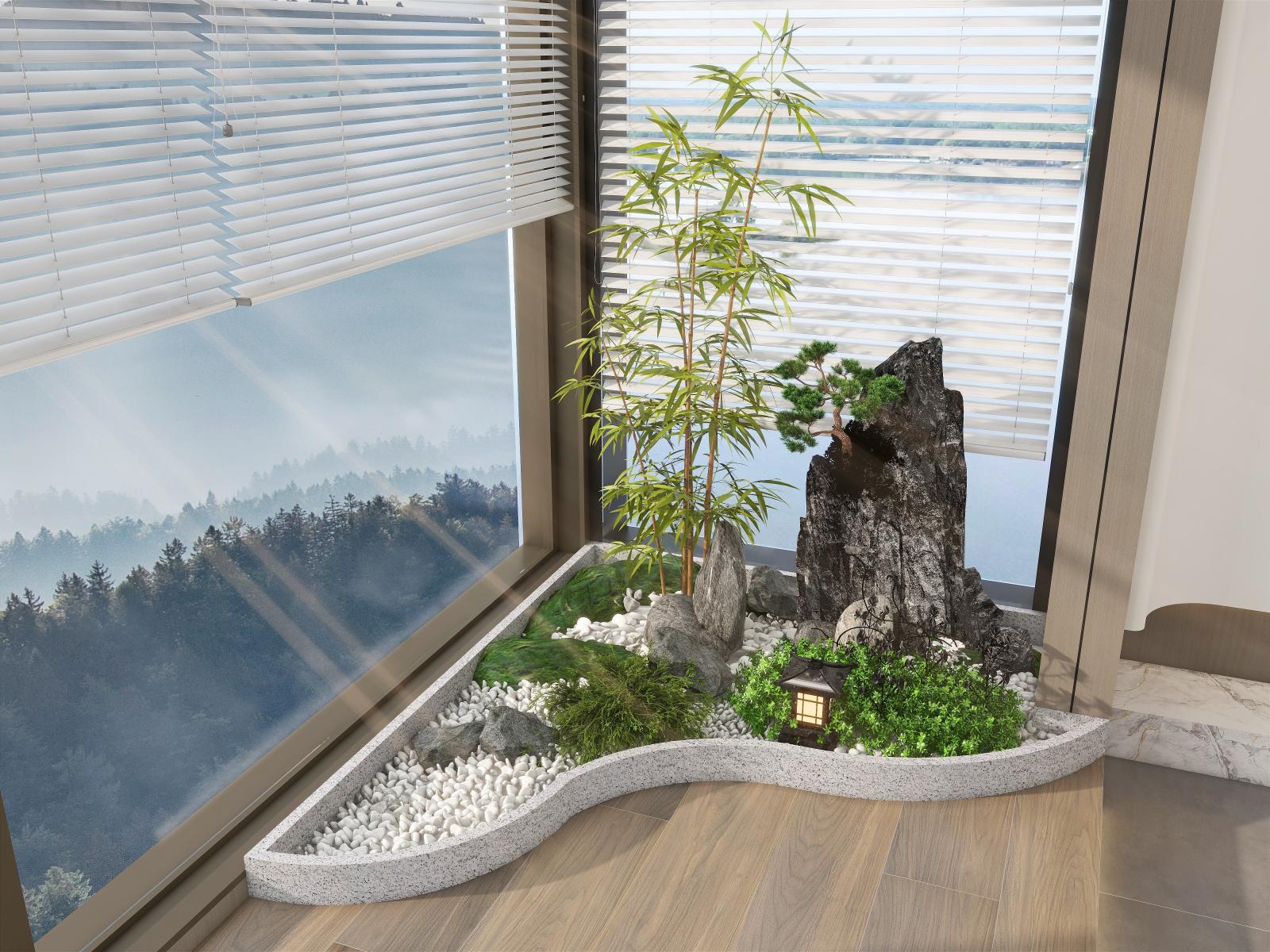 對(duì)東方的重塑,不是全盤崇古,而是與當(dāng)代生活方式融合后,鐫刻古與今、中與西的審美印記。 松石疊景,框中見自然,園趣與生活半徑相連。