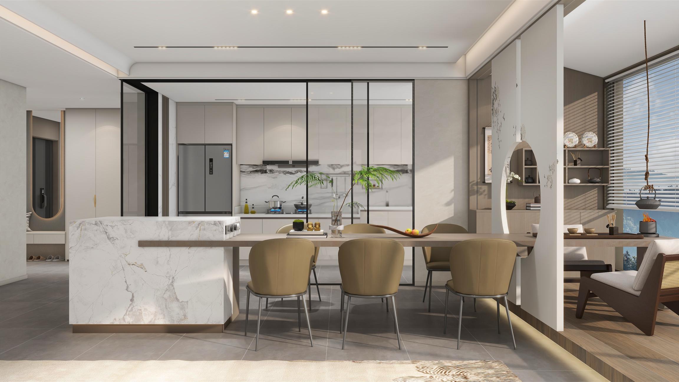 設(shè)計(jì)空間以平和的敘事節(jié)奏,書寫著一首緩緩流動(dòng)的詩。黑與白,是江南詩性深沉的底色,是山水的顏色,是東方美學(xué)中娓娓道來又千變?nèi)f化的墨色,正是這樣的純粹中和,演繹出自然之居最本質(zhì)的美。