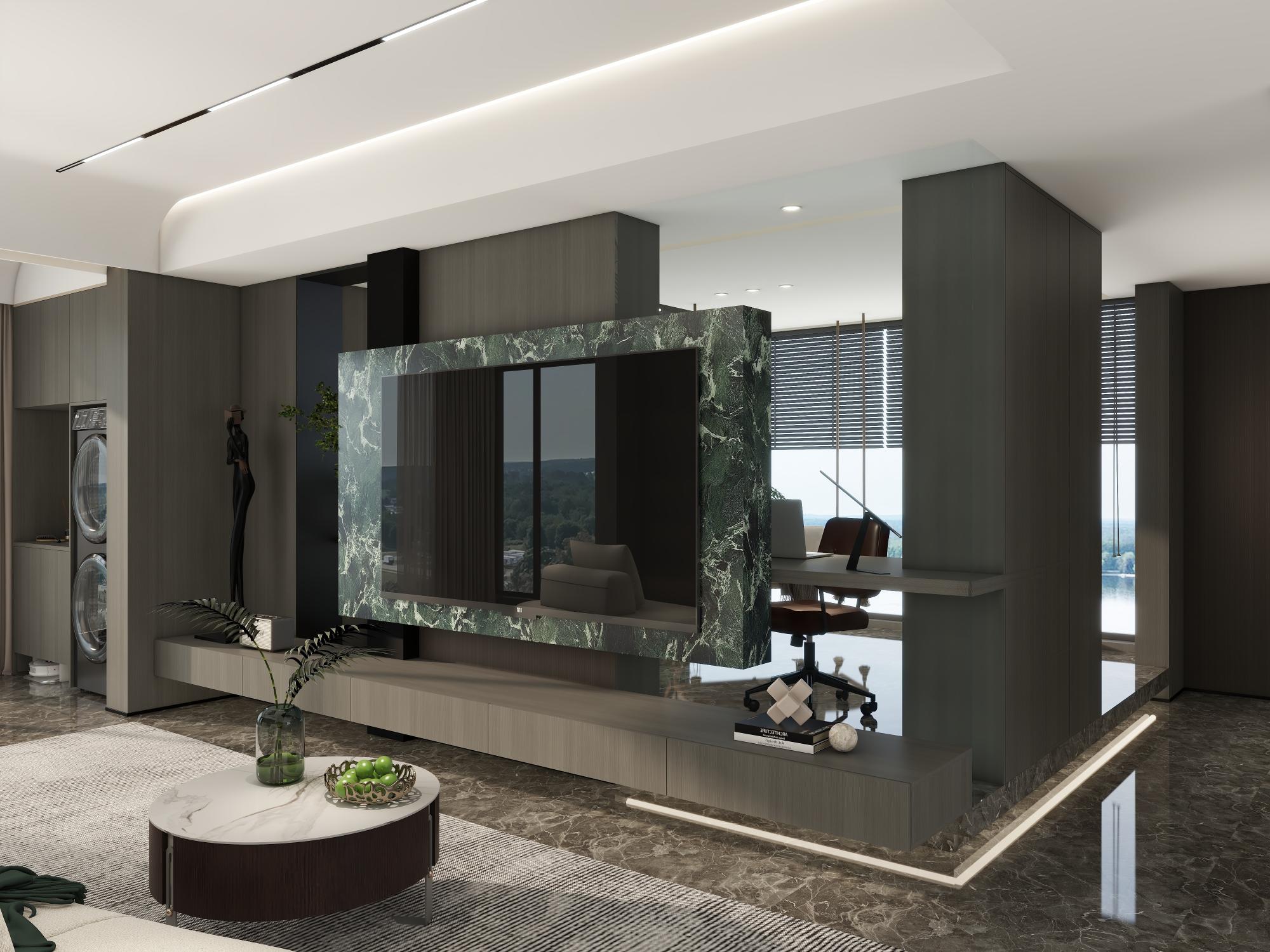 本案屋主注重對時尚品質生活的追求,設計師刪繁就簡,從簡單到極致,追求實用精致,通過材質間的碰撞,構筑起舒適的空間,尋覓一份內(nèi)心的愉悅?!耙磺斜M意,百事從歡”“活在自己的熱愛中,而非別人的眼光里”