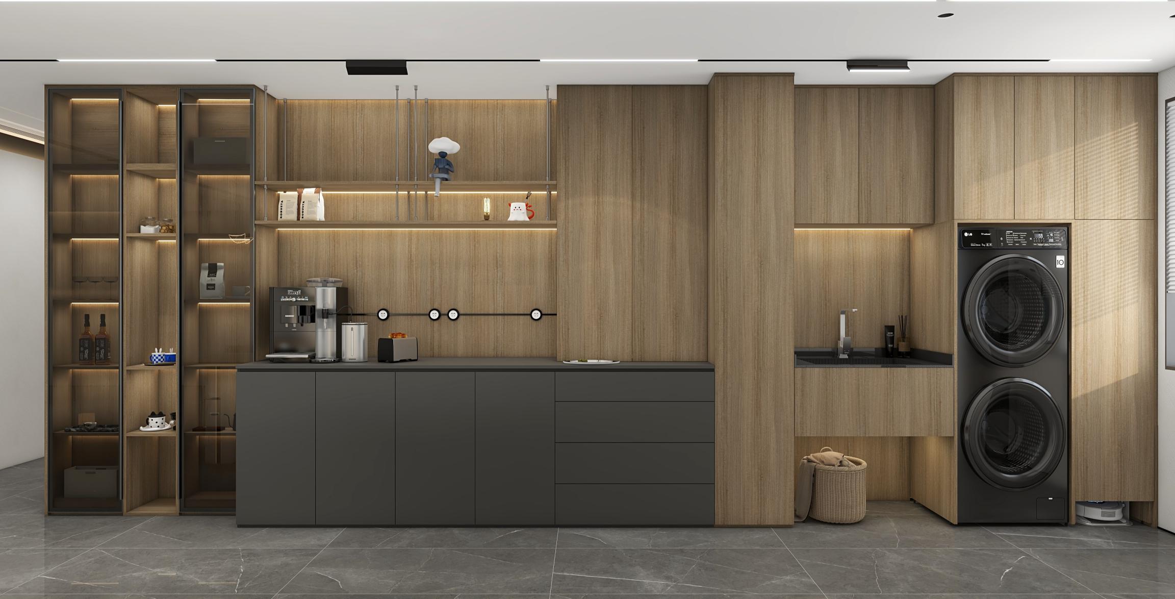 整體還是以原木+白灰色系為主,百搭耐看,原木的元素融入一些溫暖色調(diào),不會出錯的搭配形式,灰色的加入,打破一些恒定的簡單、純粹,增加—些高級,不費勁卻又簡單時髦,而幾何造型的線條感和原木的紋理則共同呈現(xiàn)空間的質(zhì)樸高級感。