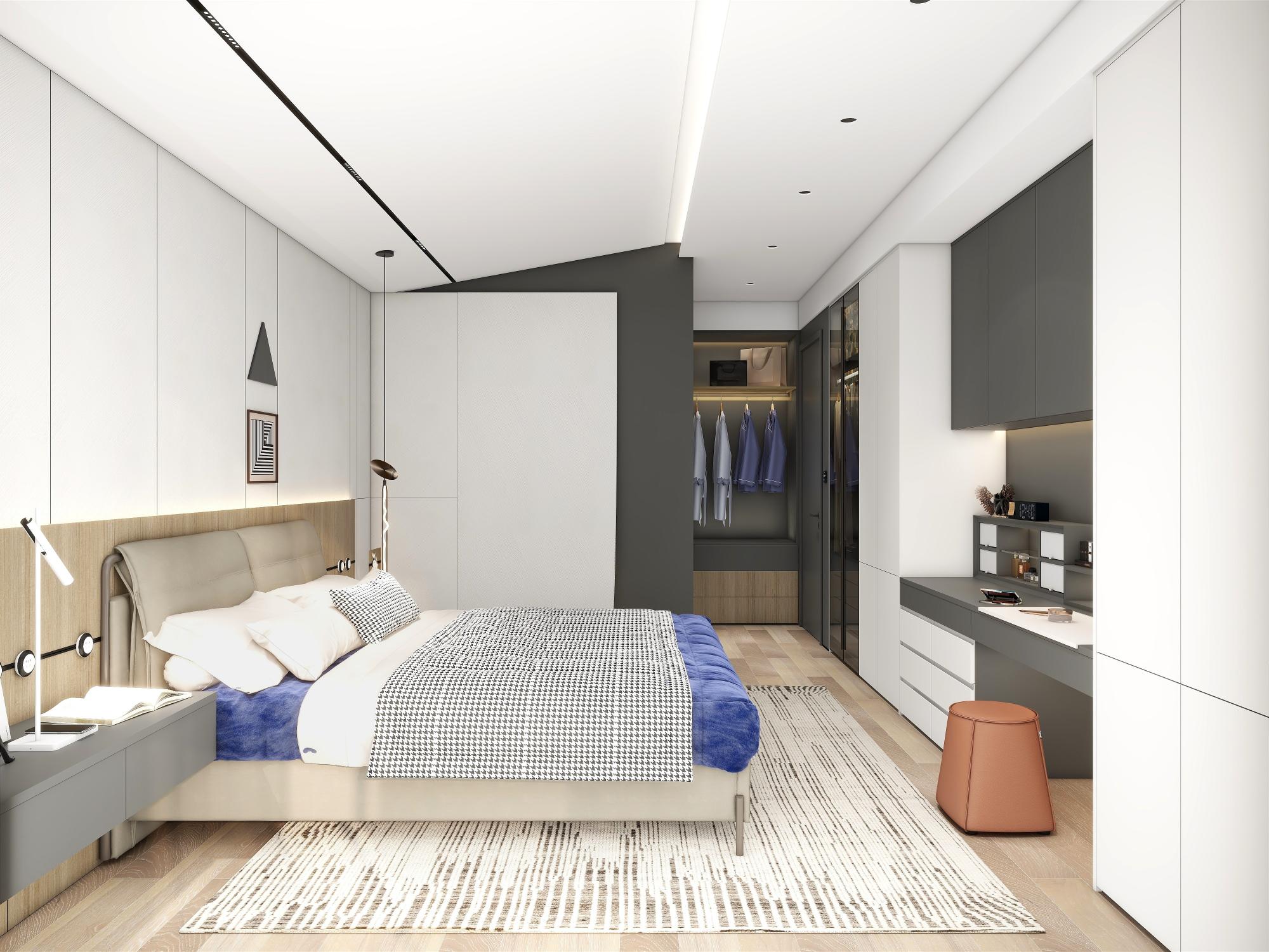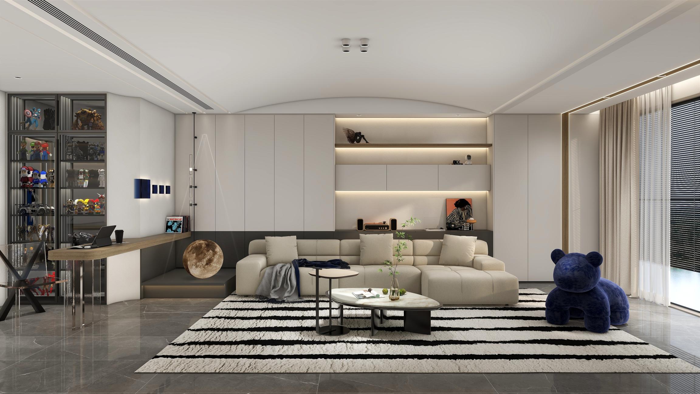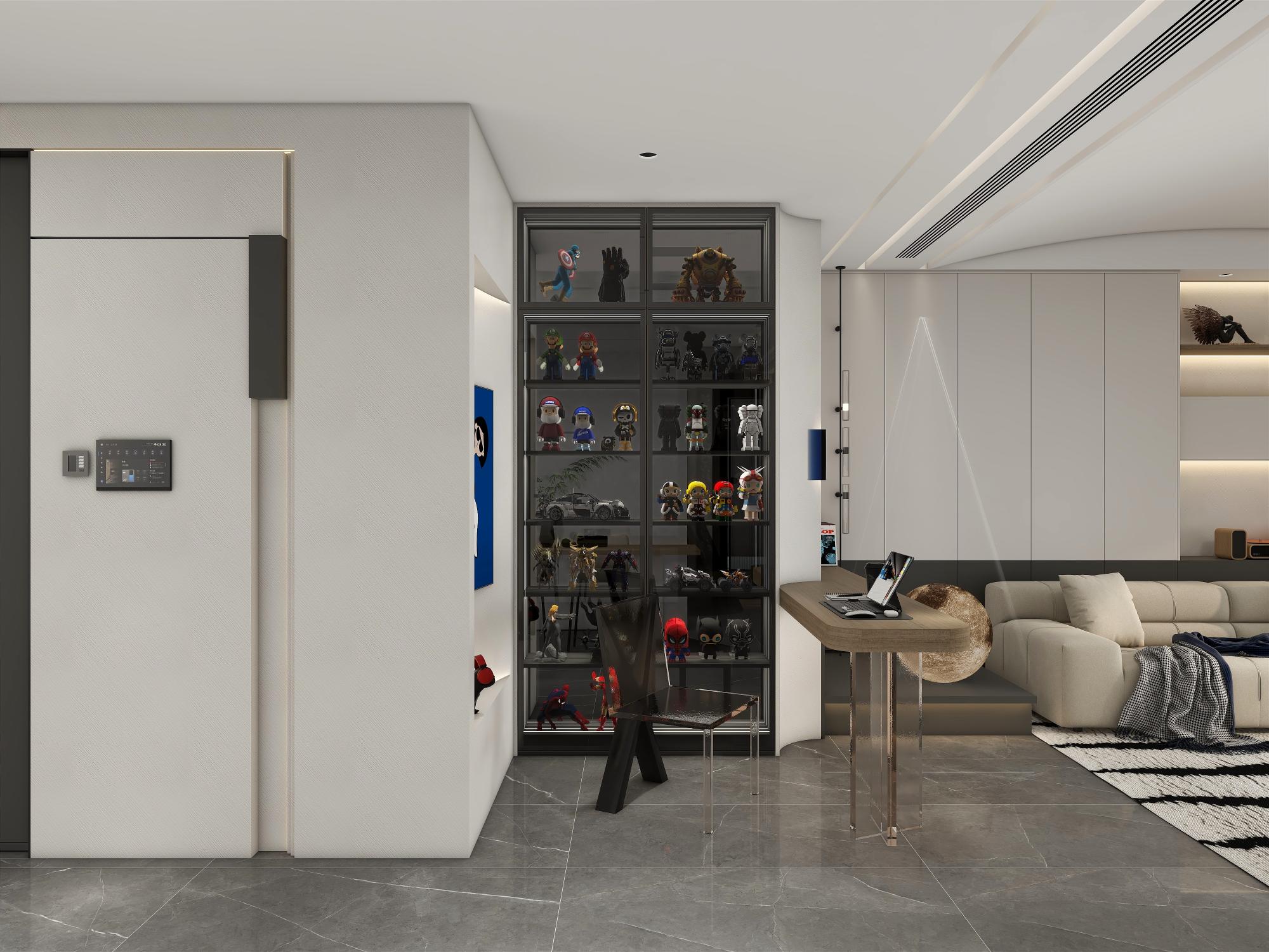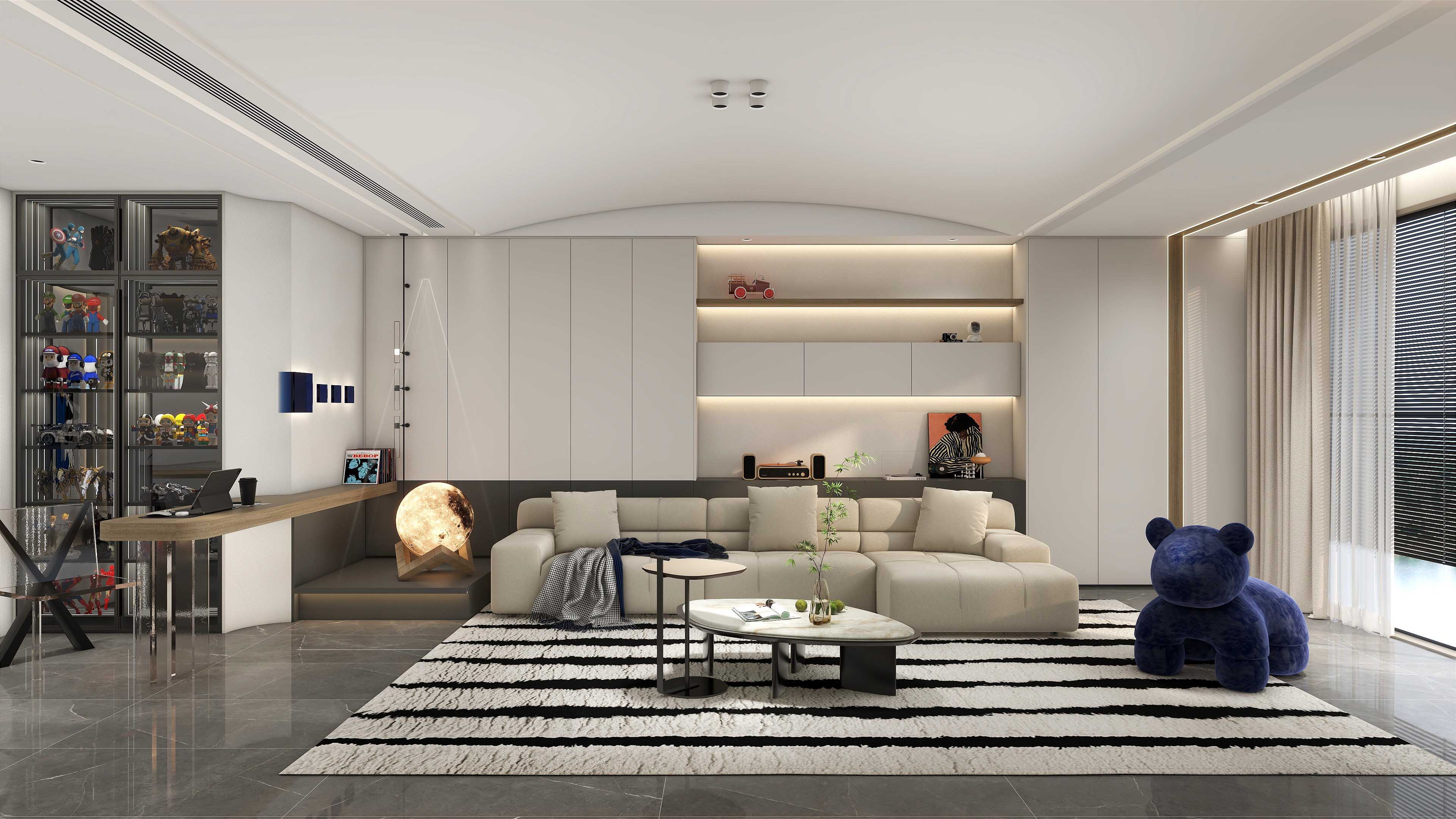 本案是年輕的一家三口居住空間,業(yè)主希望客廳有休閑學(xué)習(xí)和放置手辦的小角落,喜歡開闊性互動空間,整體風(fēng)格年輕,純粹又不失溫馨。