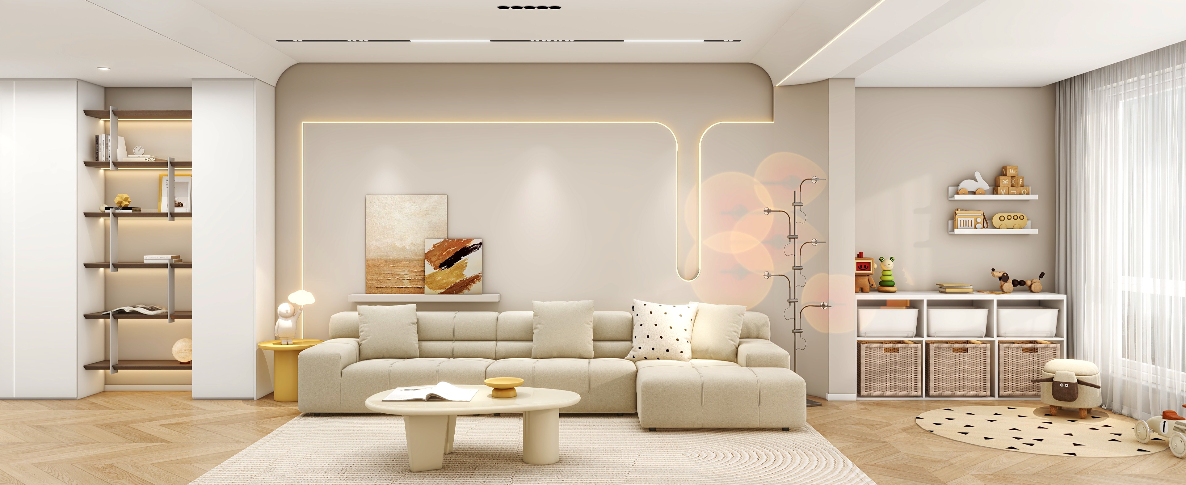 空間每一個(gè)細(xì)節(jié)都精心打磨,每一個(gè)元素都精準(zhǔn)拿捏;以獨(dú)特的巧思和靈活的設(shè)計(jì),營造出一種高級(jí)的舒適感,家的靜逸與幸福感足以驅(qū)走一天的疲憊。
