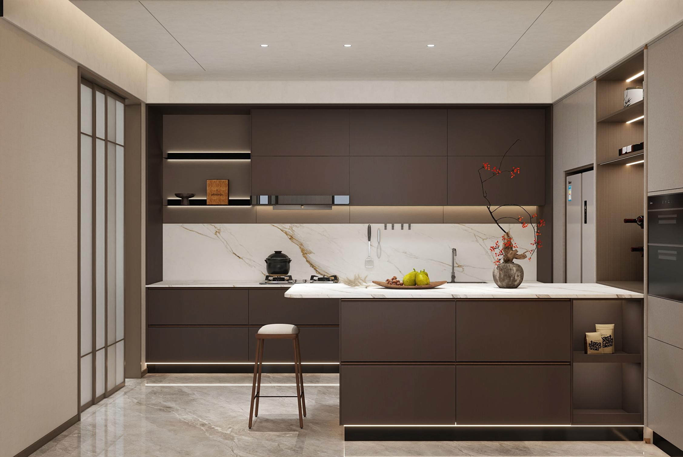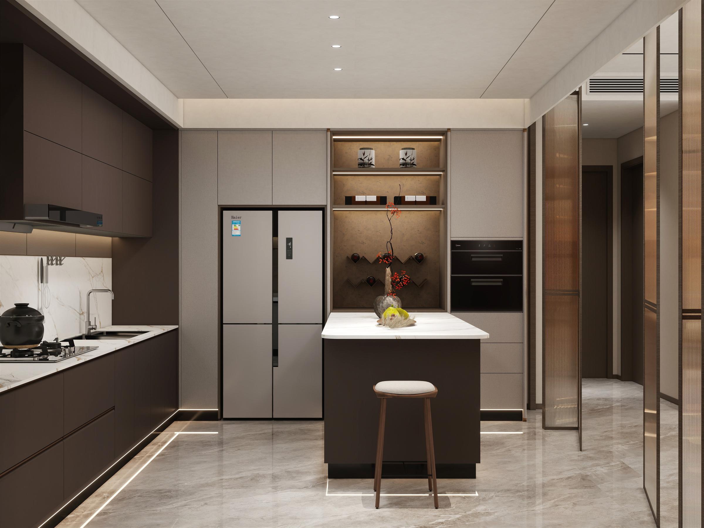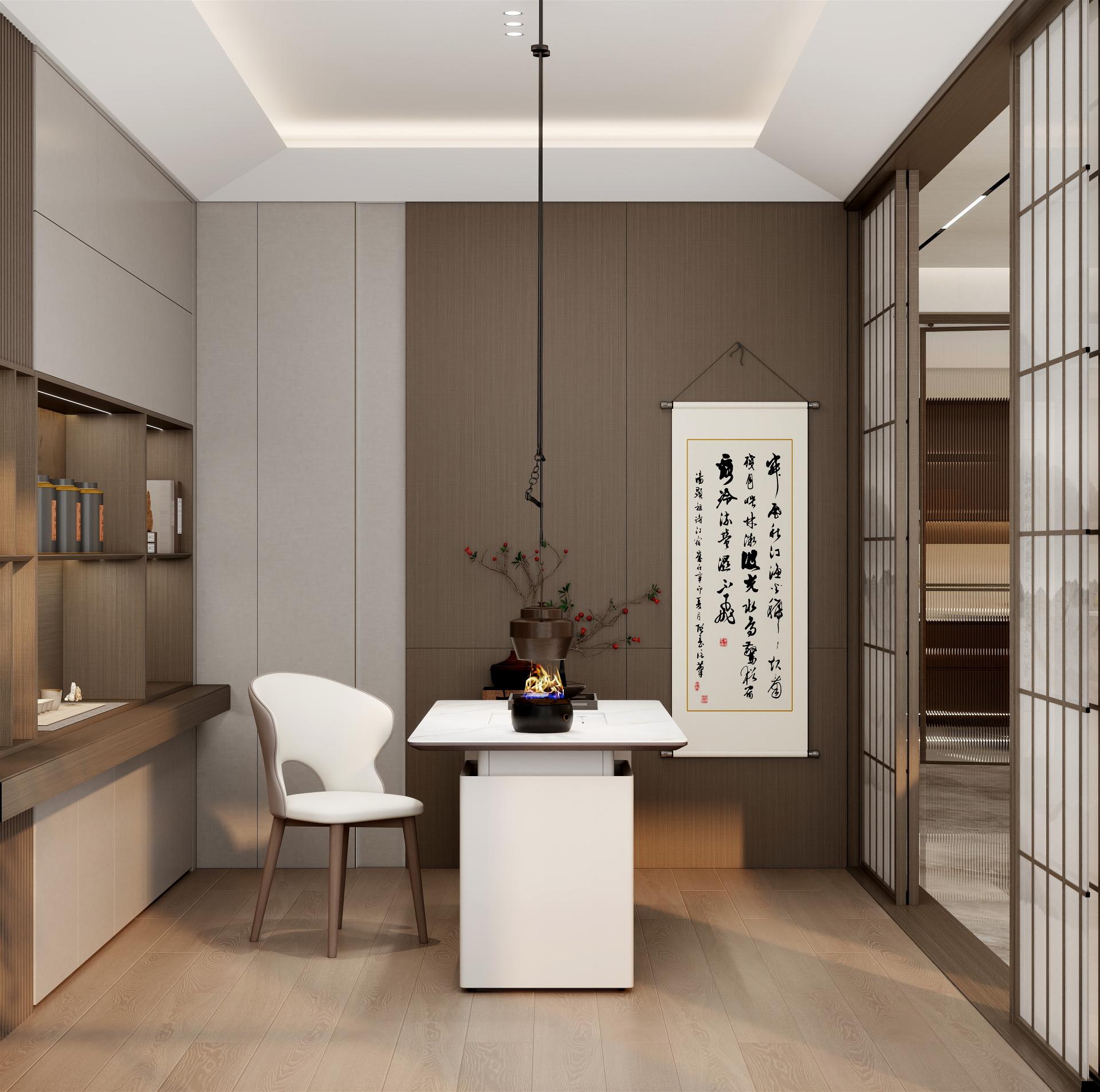 家主退休在家,需要獨立茶室,滿足日常品茗;大廚房,方便親友下廚互動;設計師將空間打造得更具有韻味,通過運用簡約的線條和自然的材質(zhì),營造出簡約而不失格調(diào)的空間,使在忙碌的生活中找到內(nèi)心的平靜與舒適。