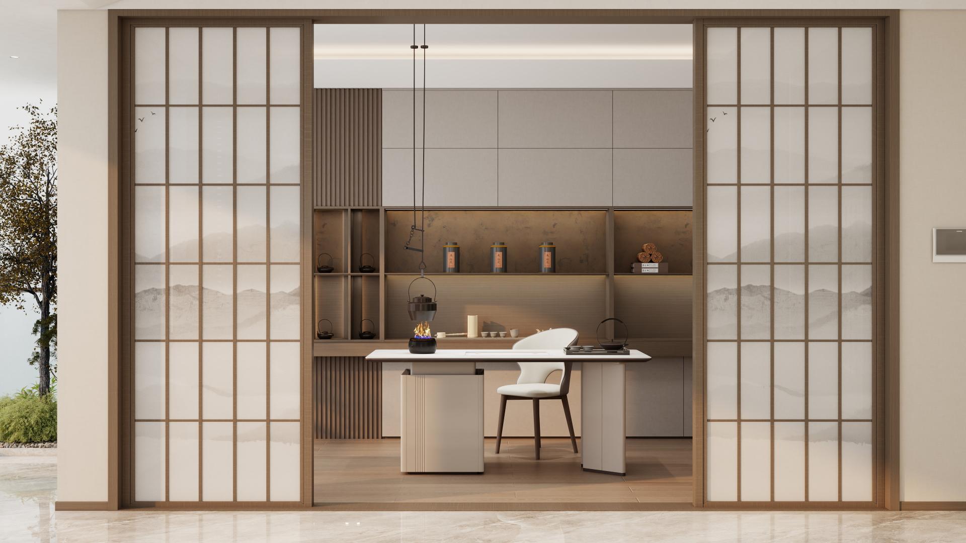 【設計亮點】通過帶有中式元素的格柵門和古跡藝術背板,來打造屬于自己的禪意家。