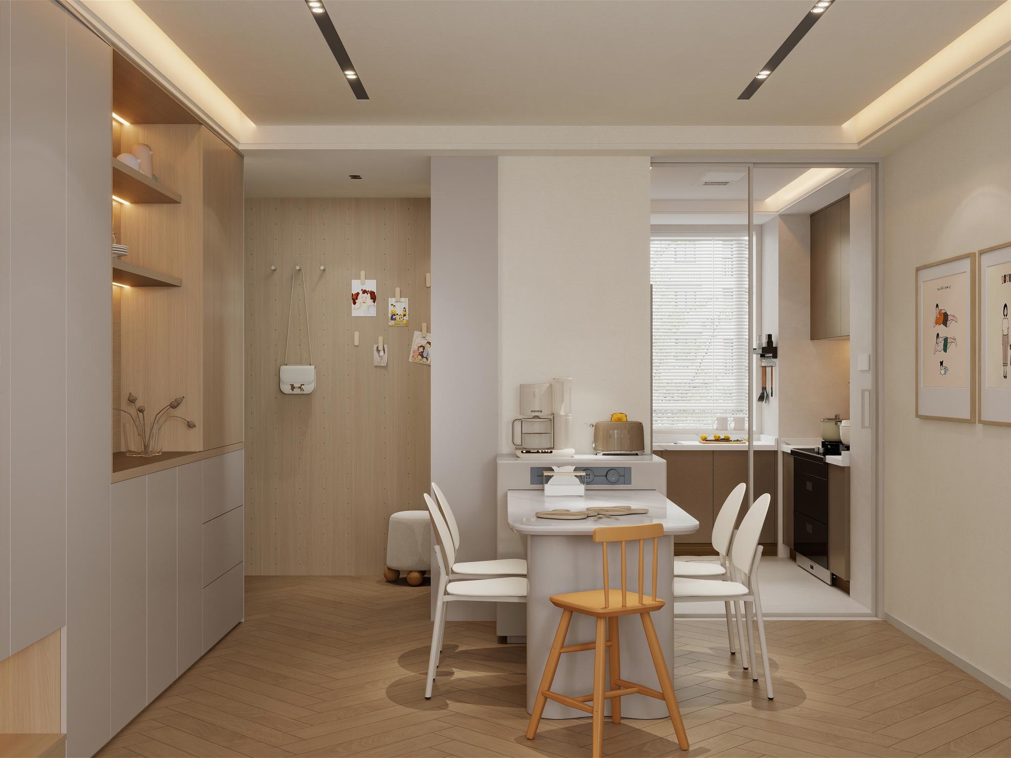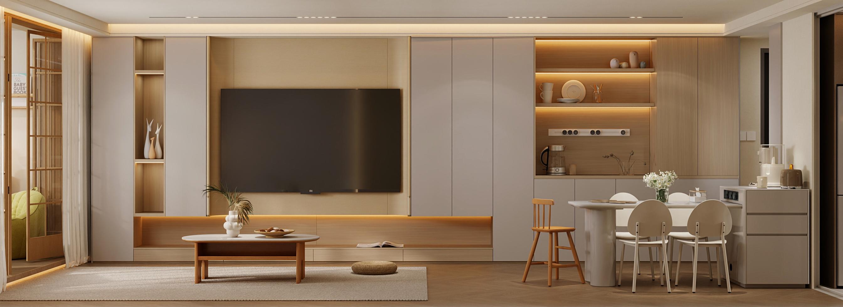 【設(shè)計(jì)亮點(diǎn)】入戶的一整面墻連通做餐邊柜電視柜一體設(shè)計(jì),儲(chǔ)物性,美觀性風(fēng)格都能同時(shí)滿足。