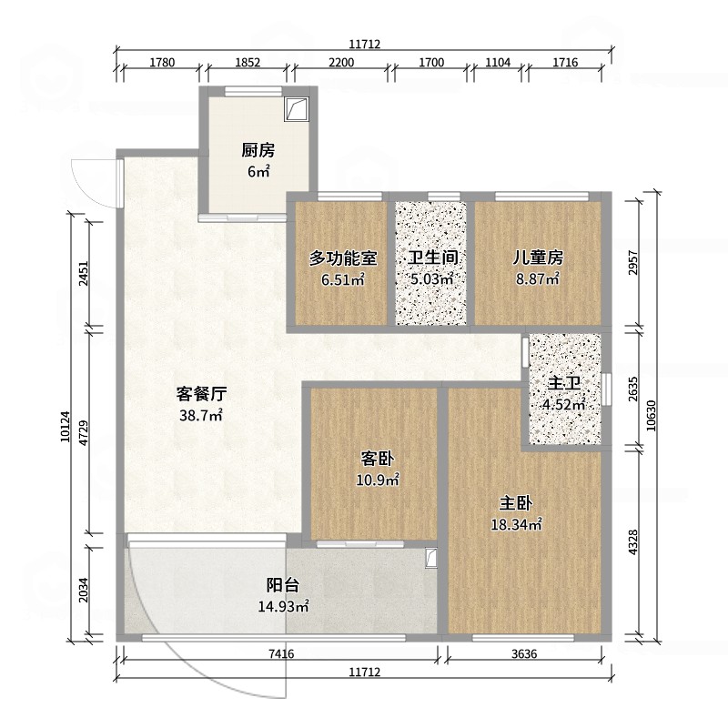 【功能需求】需要榻榻米作為書房偶爾居家辦公;陽(yáng)臺(tái)打造成兒童游樂區(qū)+地臺(tái)的設(shè)計(jì);