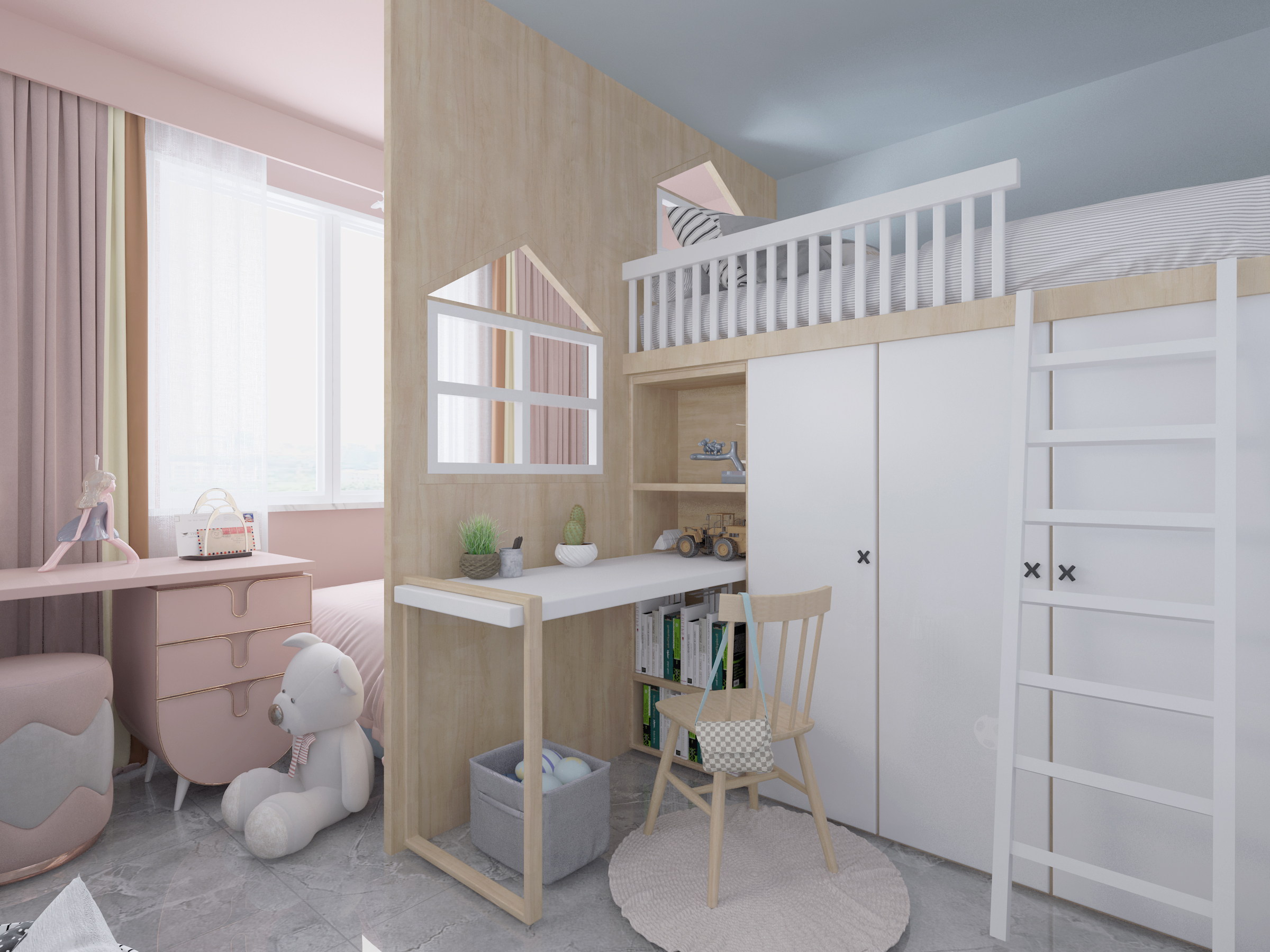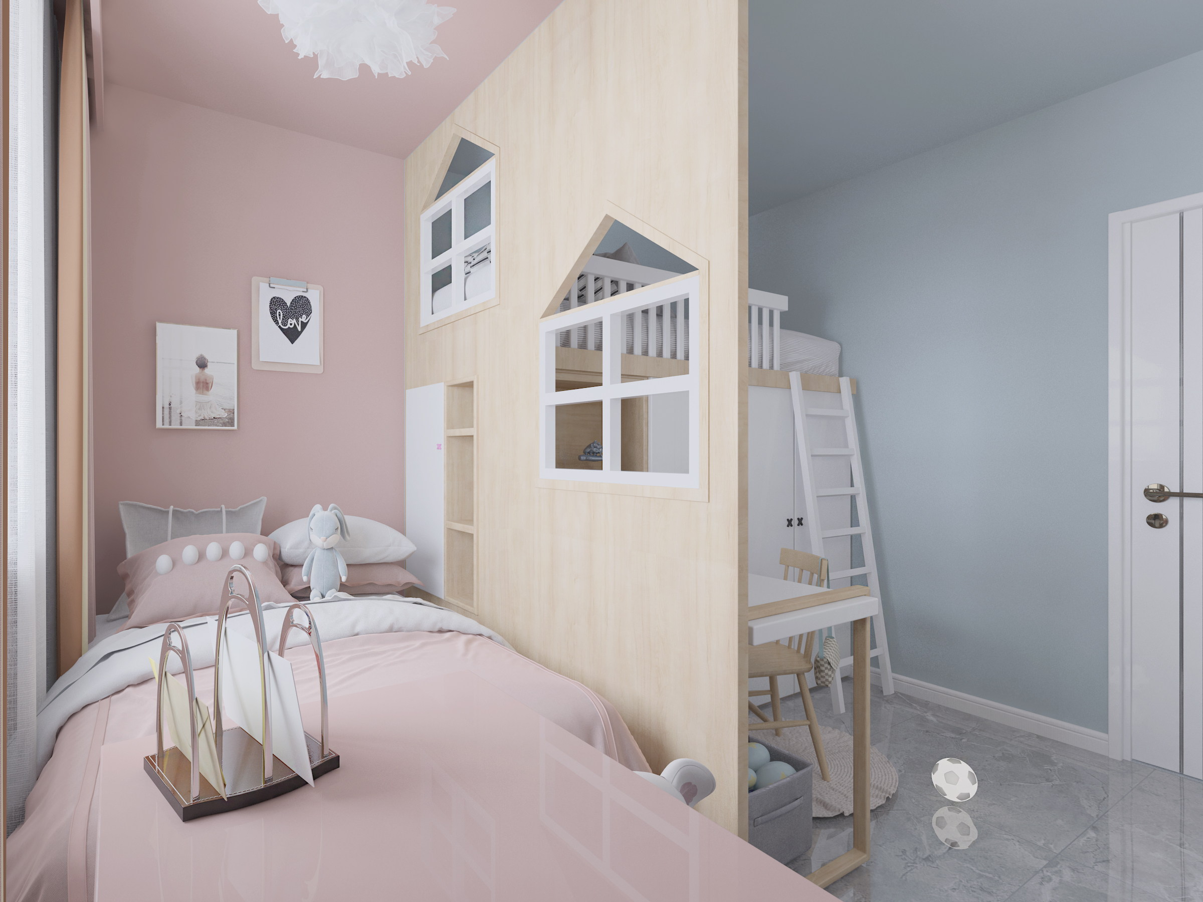 ? 一家四口人住,需要三室,但是沒有那么多房間,老房子都是承重墻,也沒辦法拆,只能在一個(gè)房間里做出來兩個(gè)房間,總體的顏色搭配,男女孩的區(qū)分還是比較滿意的,客戶看到效果也是眼前一亮,既滿足了使用功能的需求,也達(dá)到了美的效果。