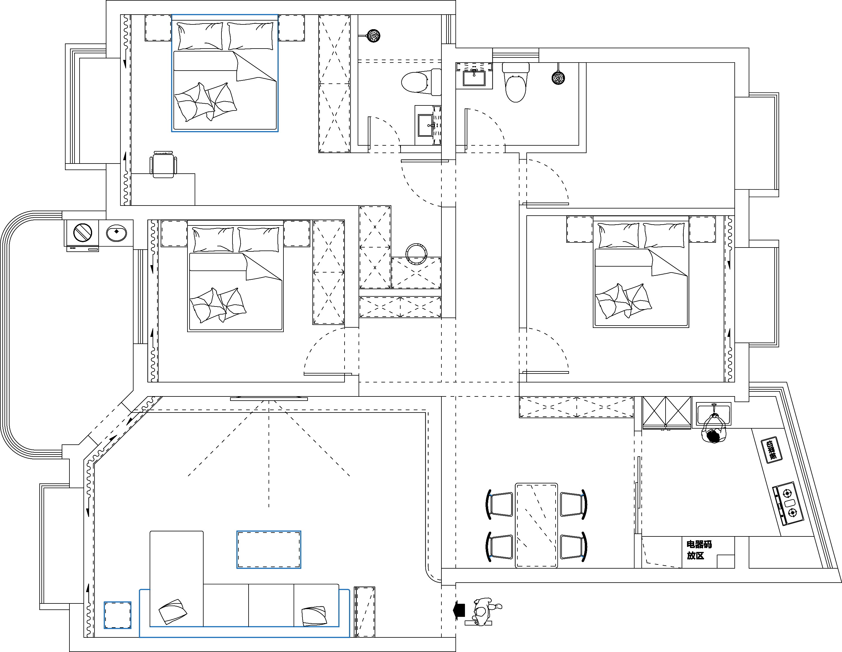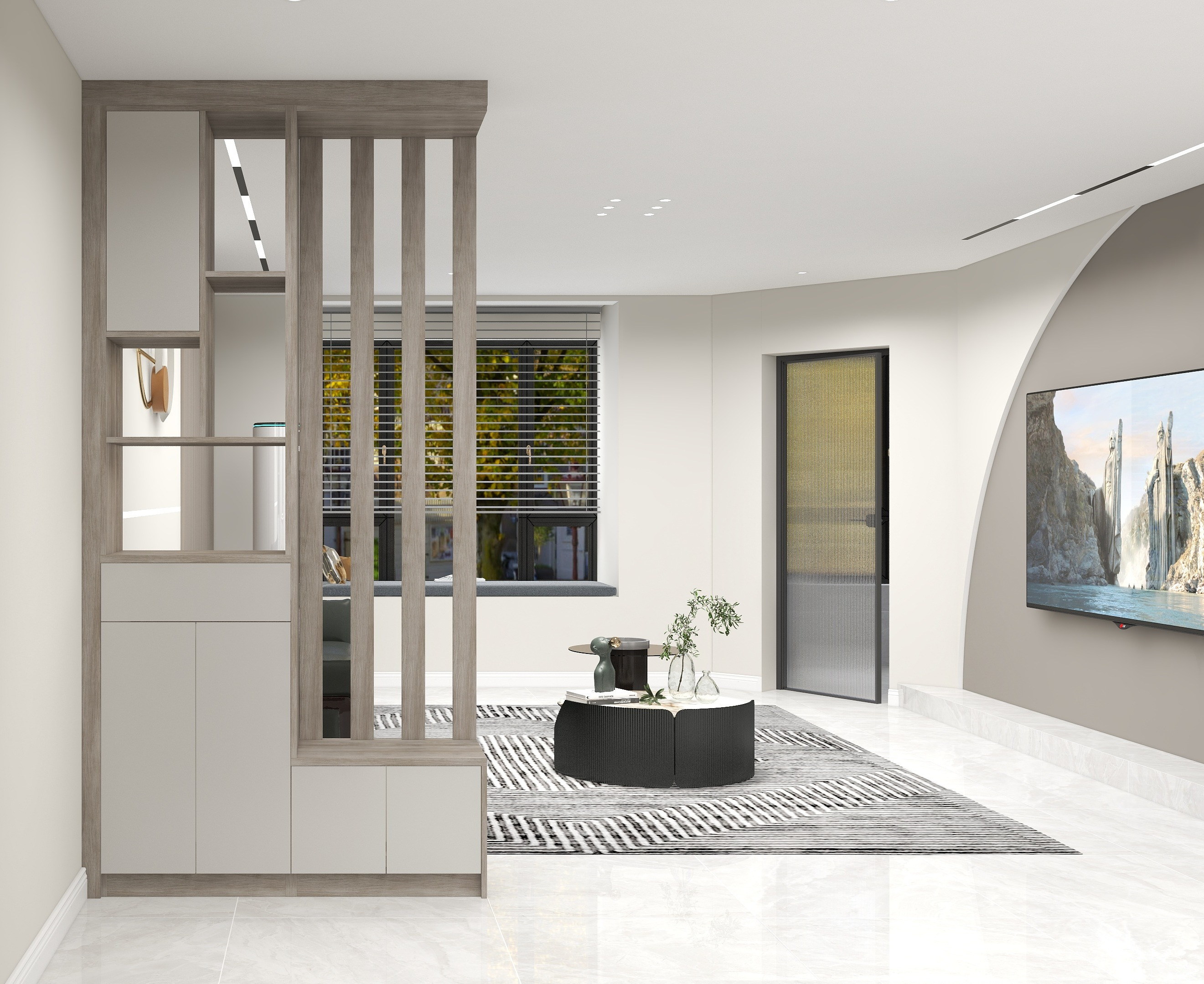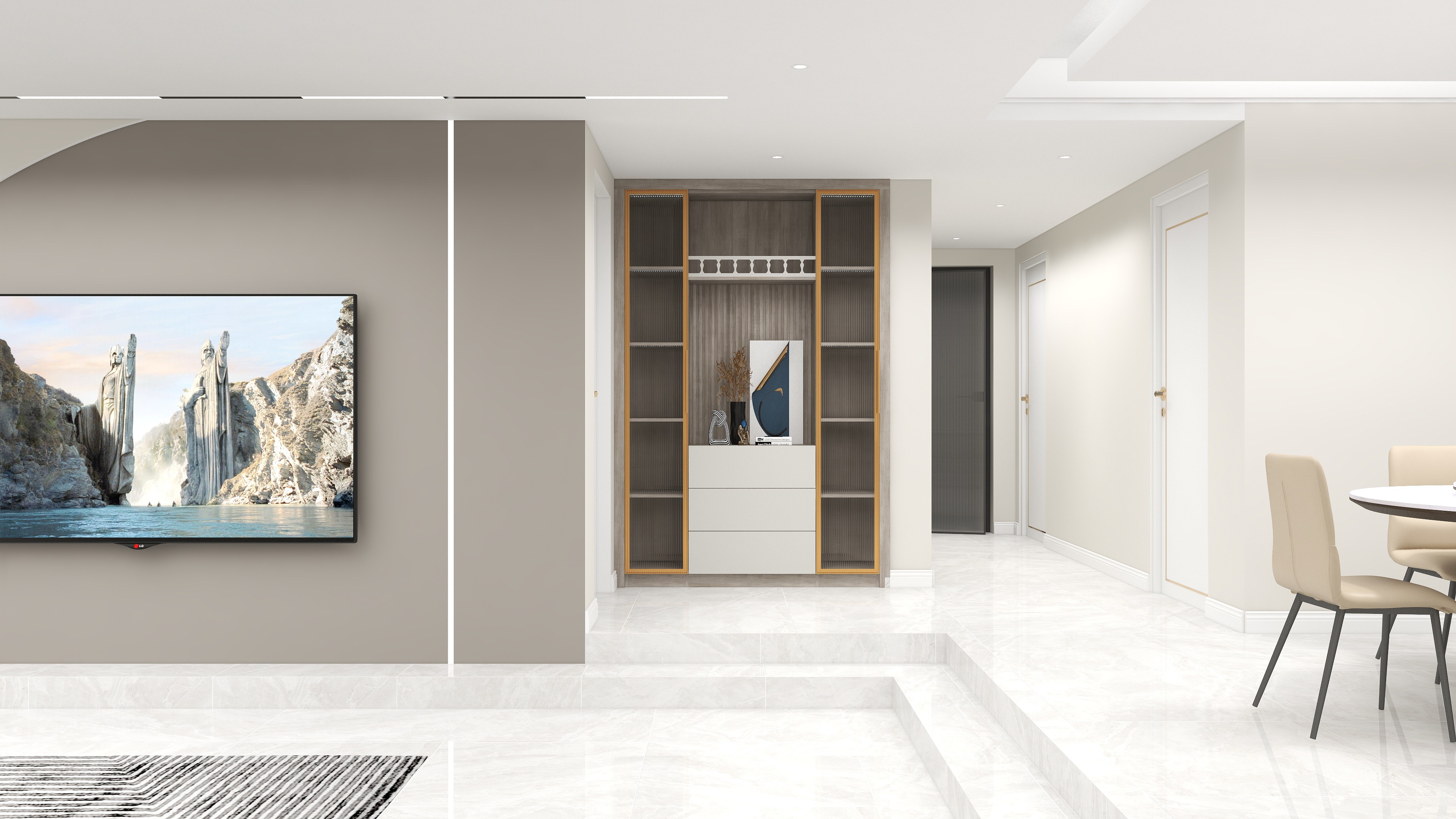 這個戶型有個錯層,兩步臺階的高度,這個臺階成了屋里的一個亮點,臺階和電視墻的電視柜完美銜接,從入戶看過去讓人眼前一亮,客餐廳的無主燈設計是另一個亮點,完美銜接了,頂面和梁面的誤差,顏色上以淺色為主,使得房間更加的溫馨,整體的感覺很舒服。