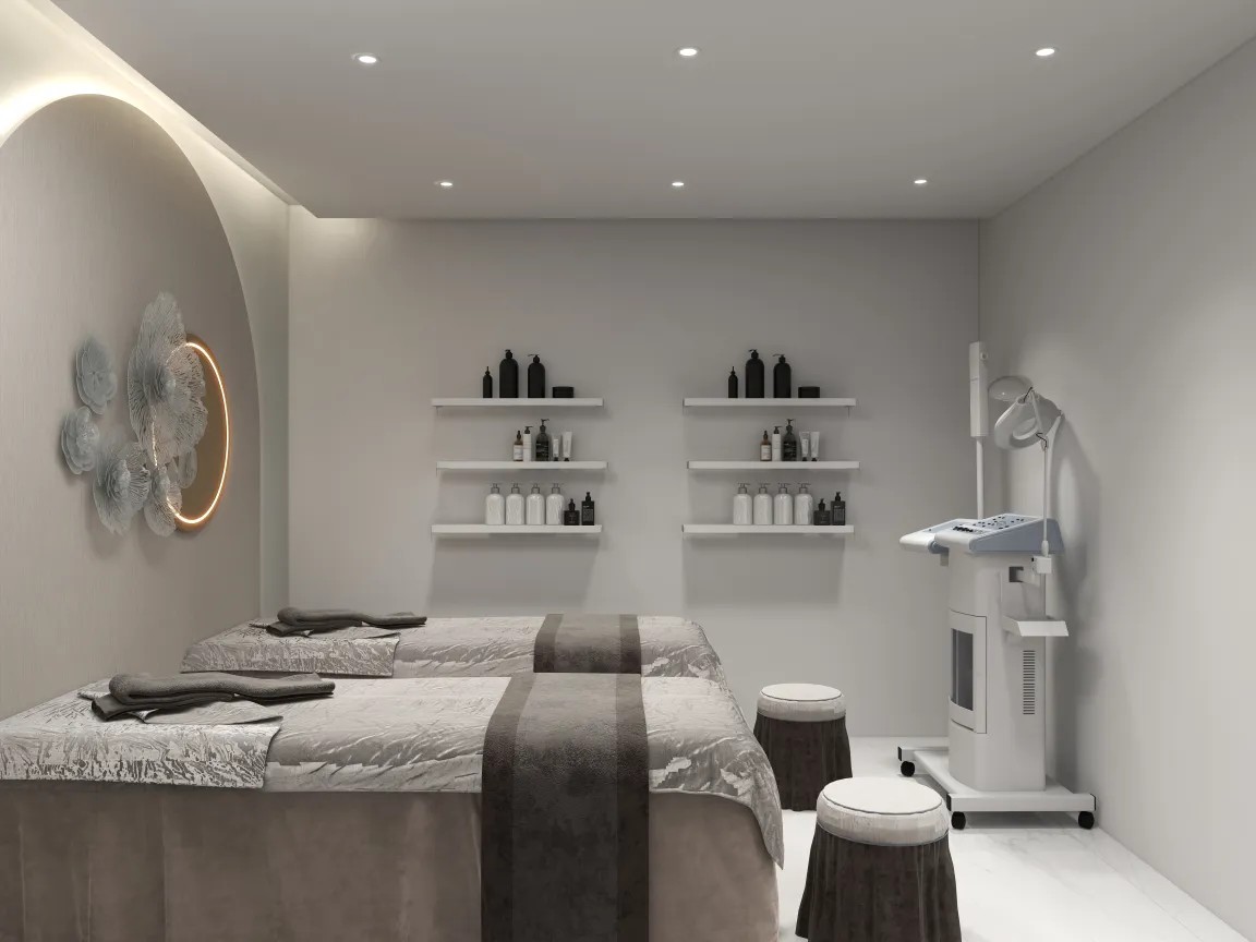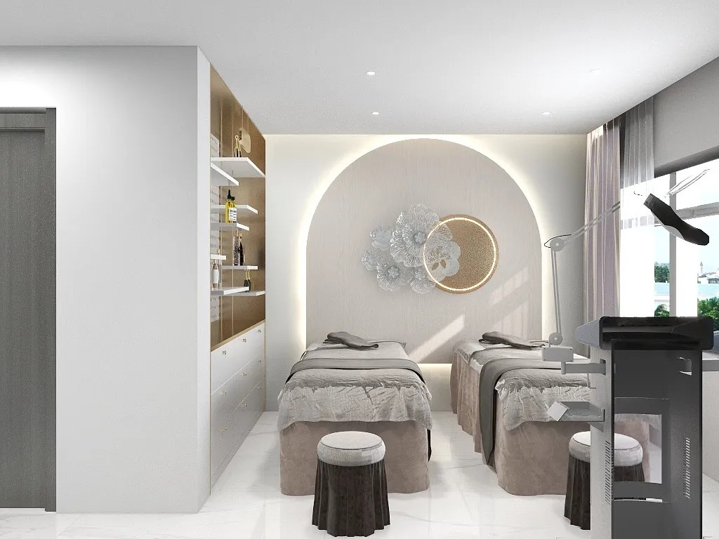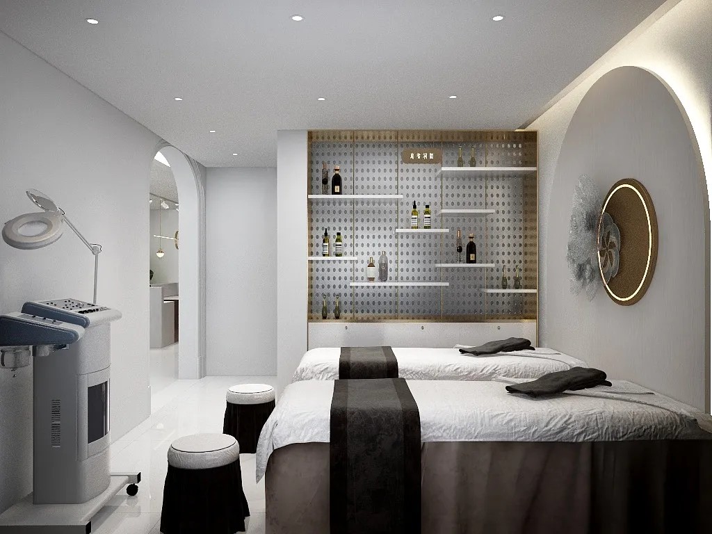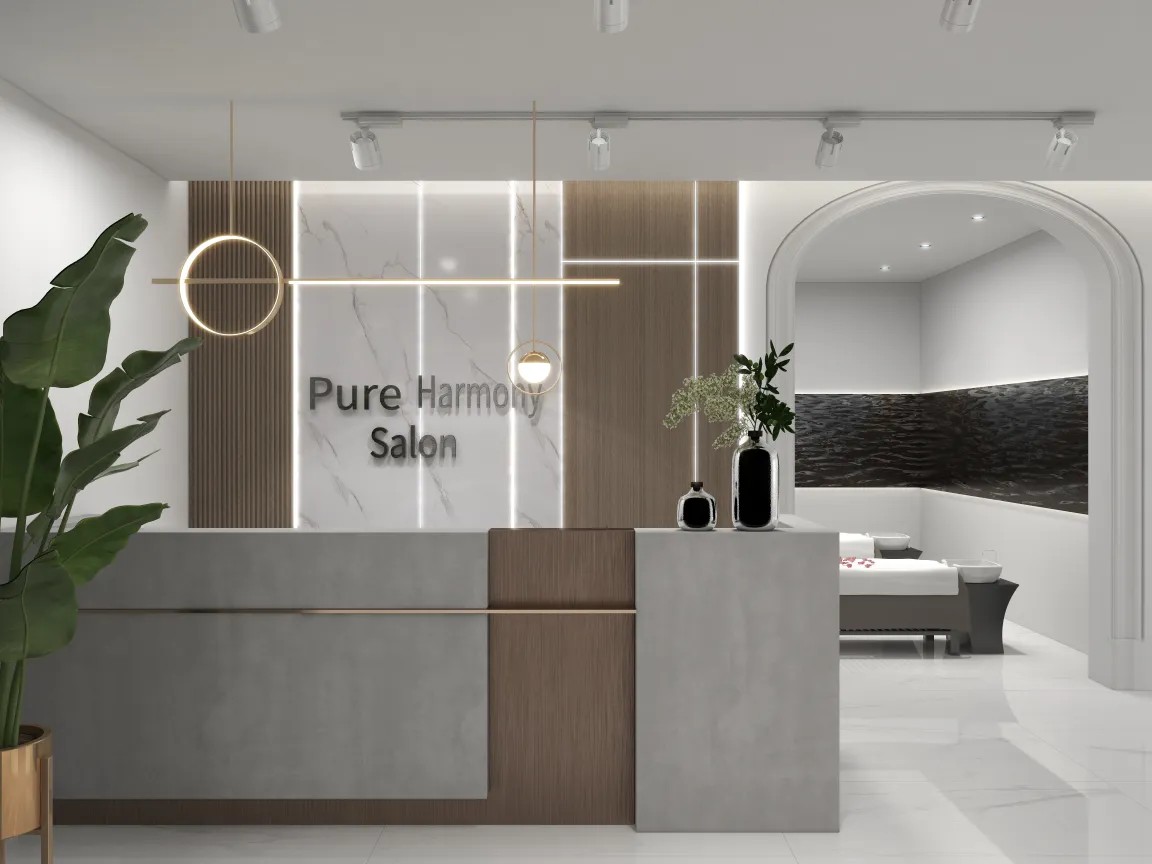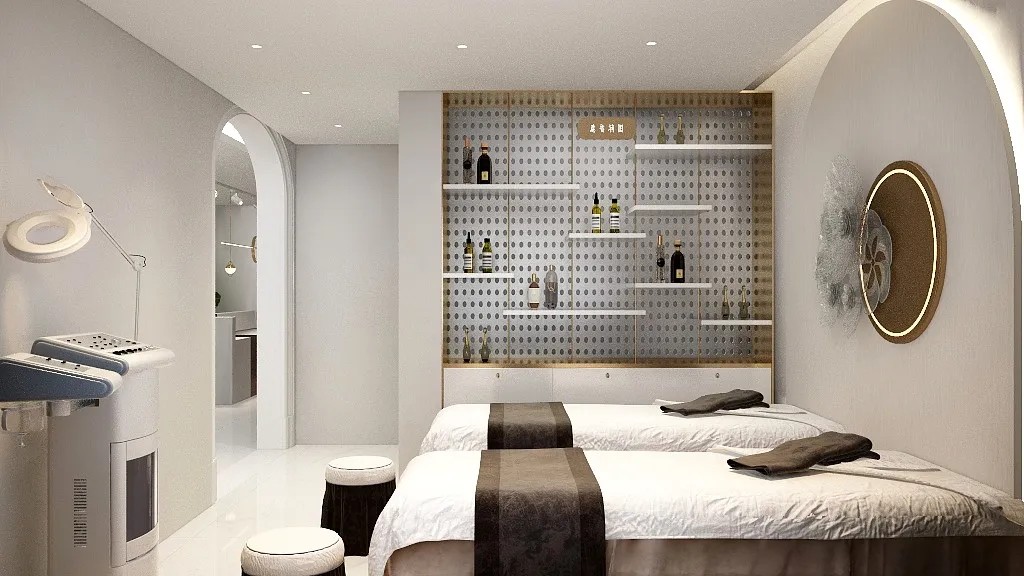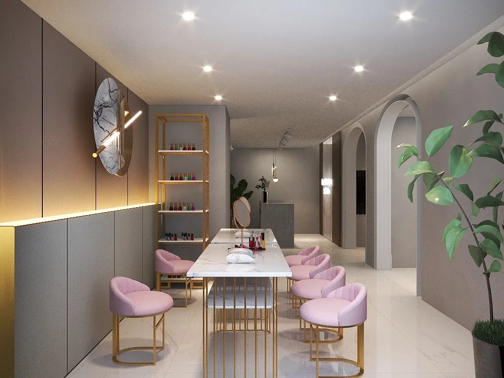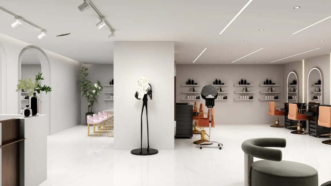 ? 一個(gè)理發(fā)店的裝飾效果圖,現(xiàn)代簡(jiǎn)約風(fēng)格。