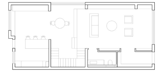 房子的原始戶型比較方正,左側(cè)是客廳餐廳的分區(qū),右側(cè)是玄關(guān)和客廳,但由于建筑的中心有個(gè)開發(fā)商贈(zèng)送的天井,導(dǎo)致空間不夠通透。所以我們決定將天井部分打通,讓空間更明亮、寬敞的同時(shí),也實(shí)現(xiàn)更高的利用率。