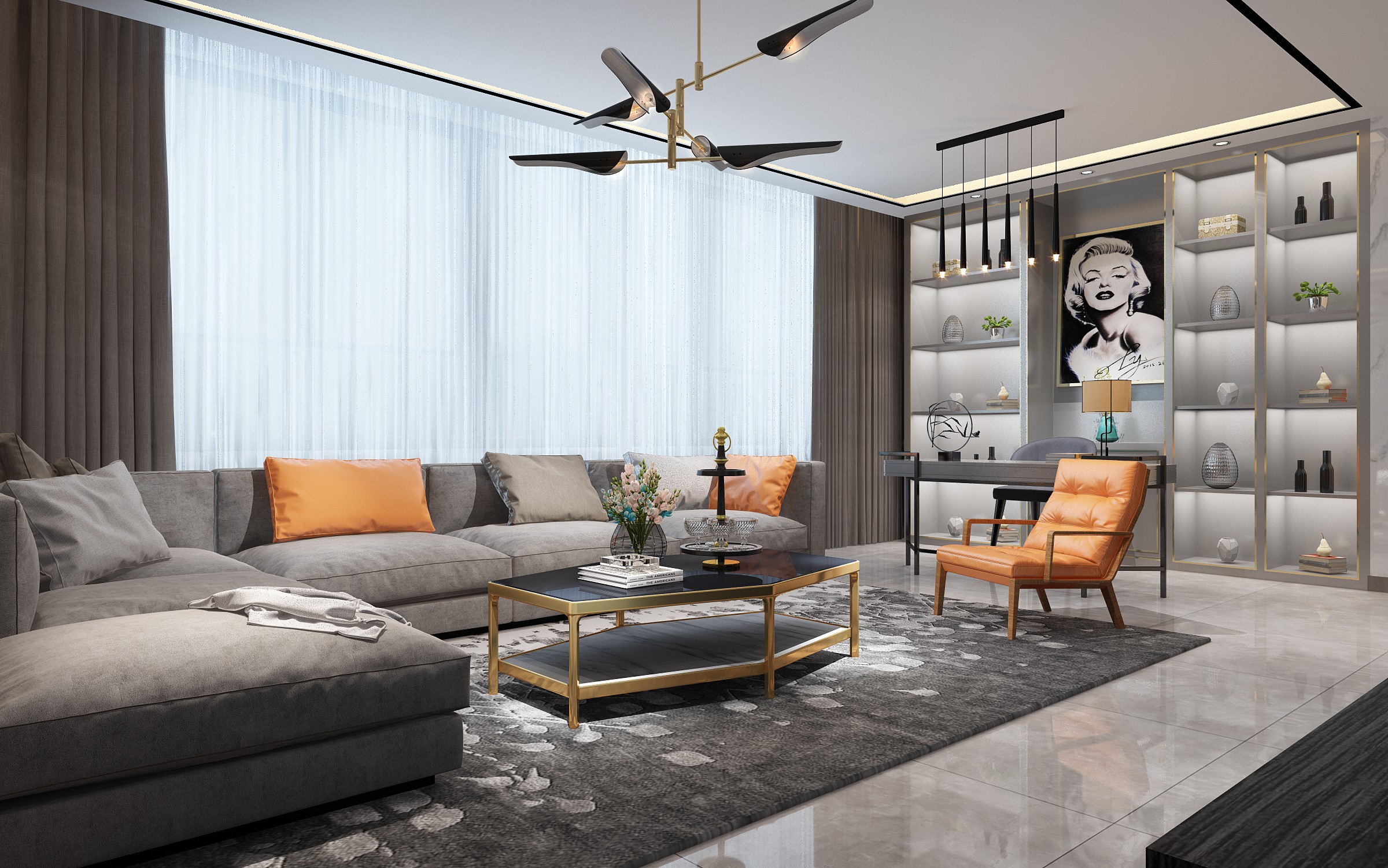 客廳與書房做的開放式設(shè)計,讓空間更大氣!