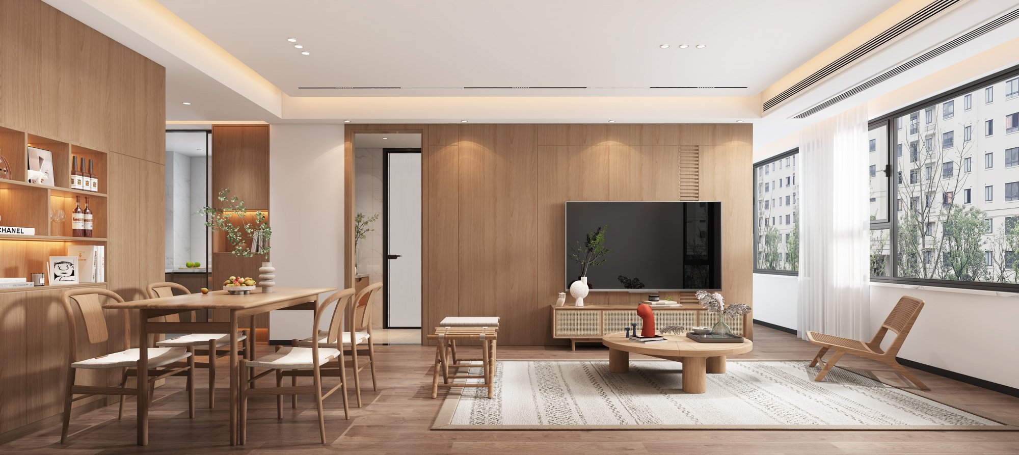 原木風格的設計,以木飾板為主的空間既溫馨又舒適!