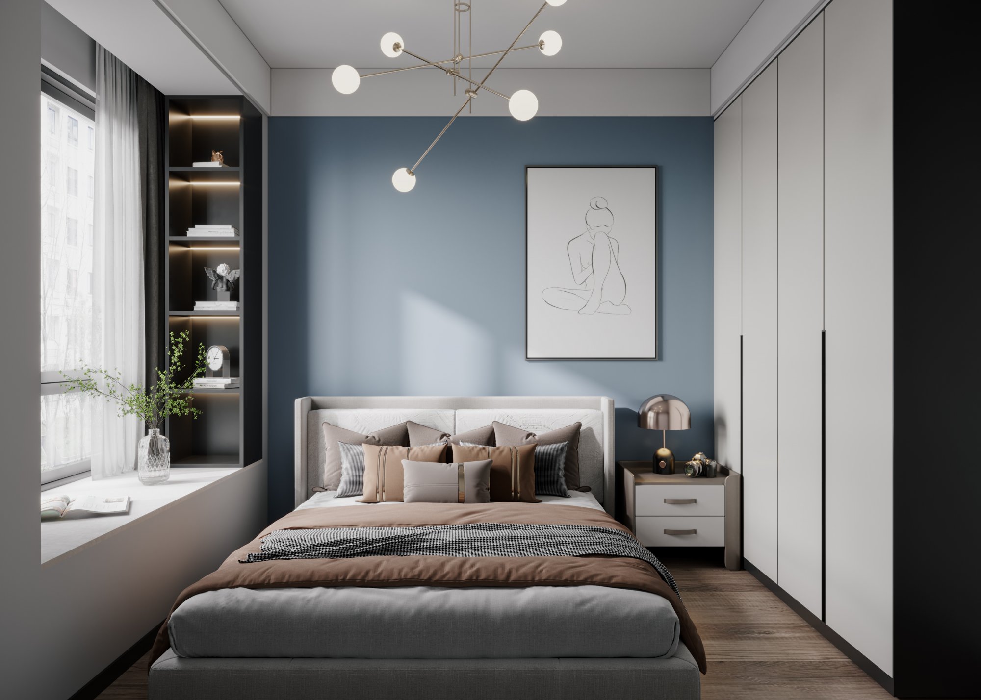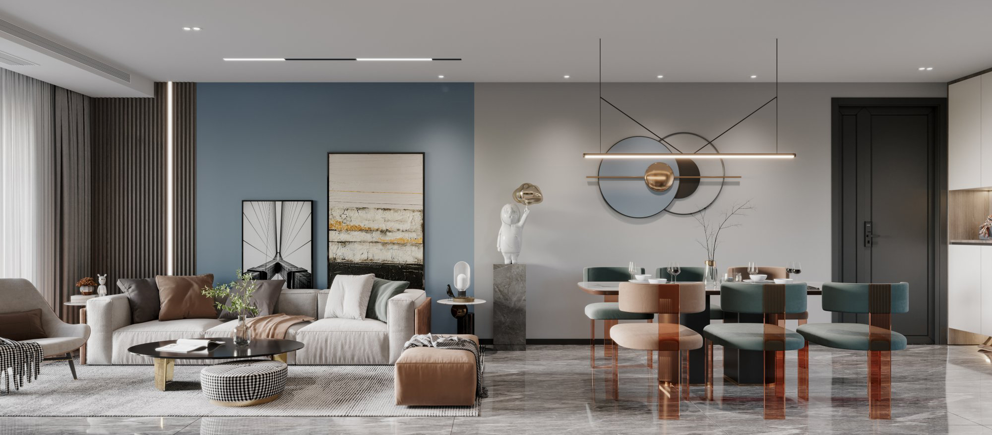 灰與藍(lán)的拼接,打造出一個安靜舒適的生活空間!