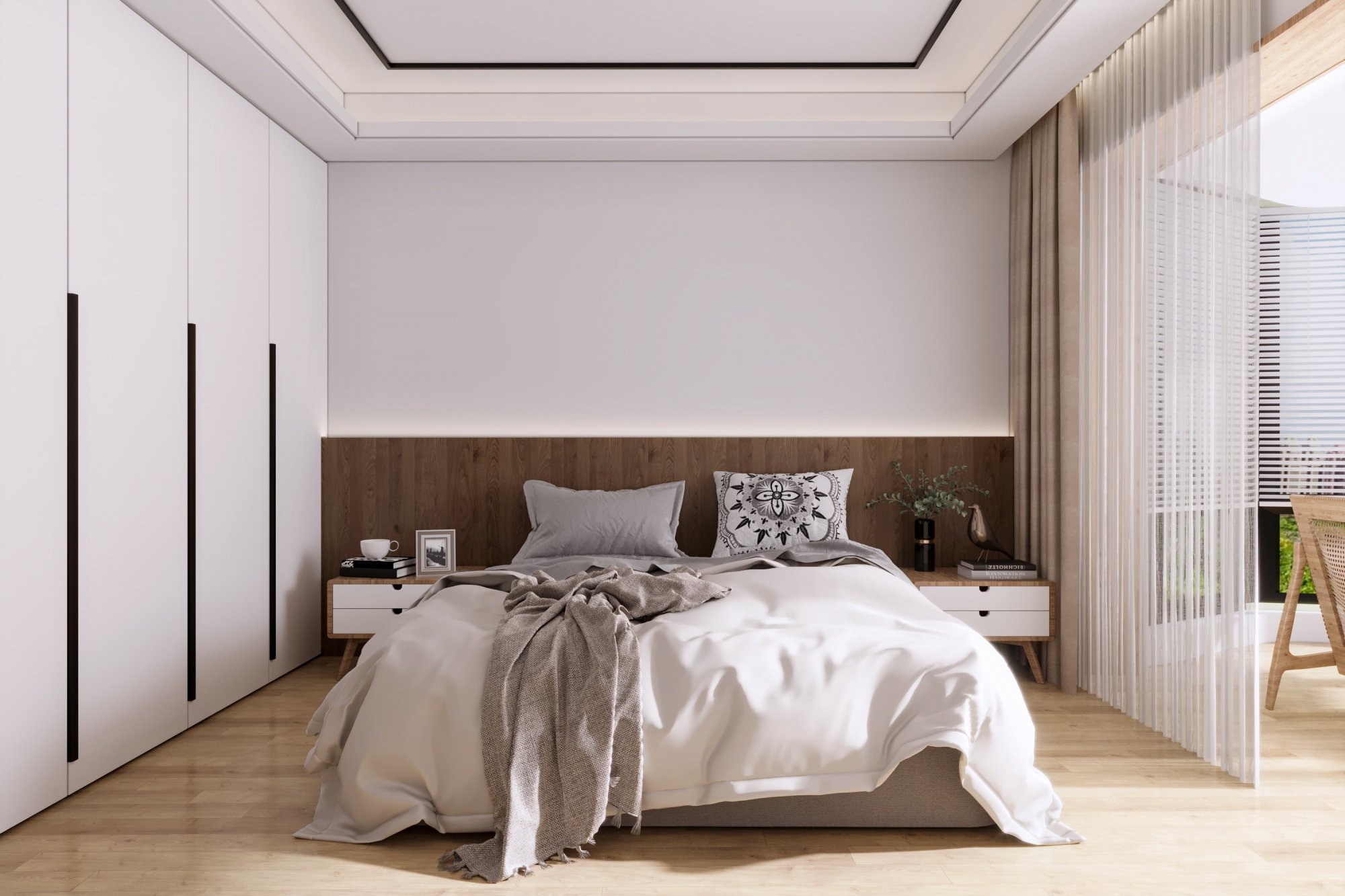 深色調(diào)的現(xiàn)代風(fēng),在頂部燈光的營(yíng)造下溫柔舒適!