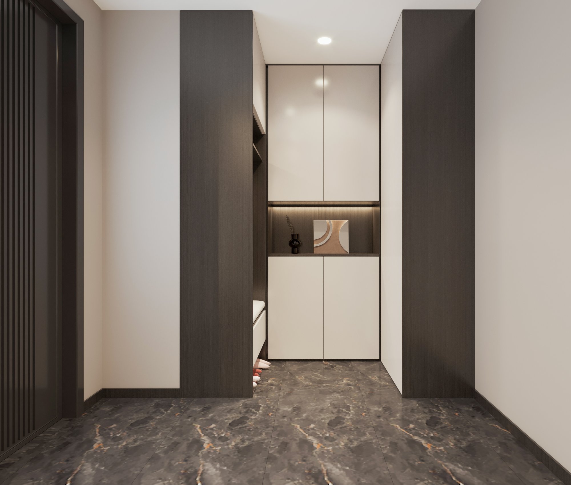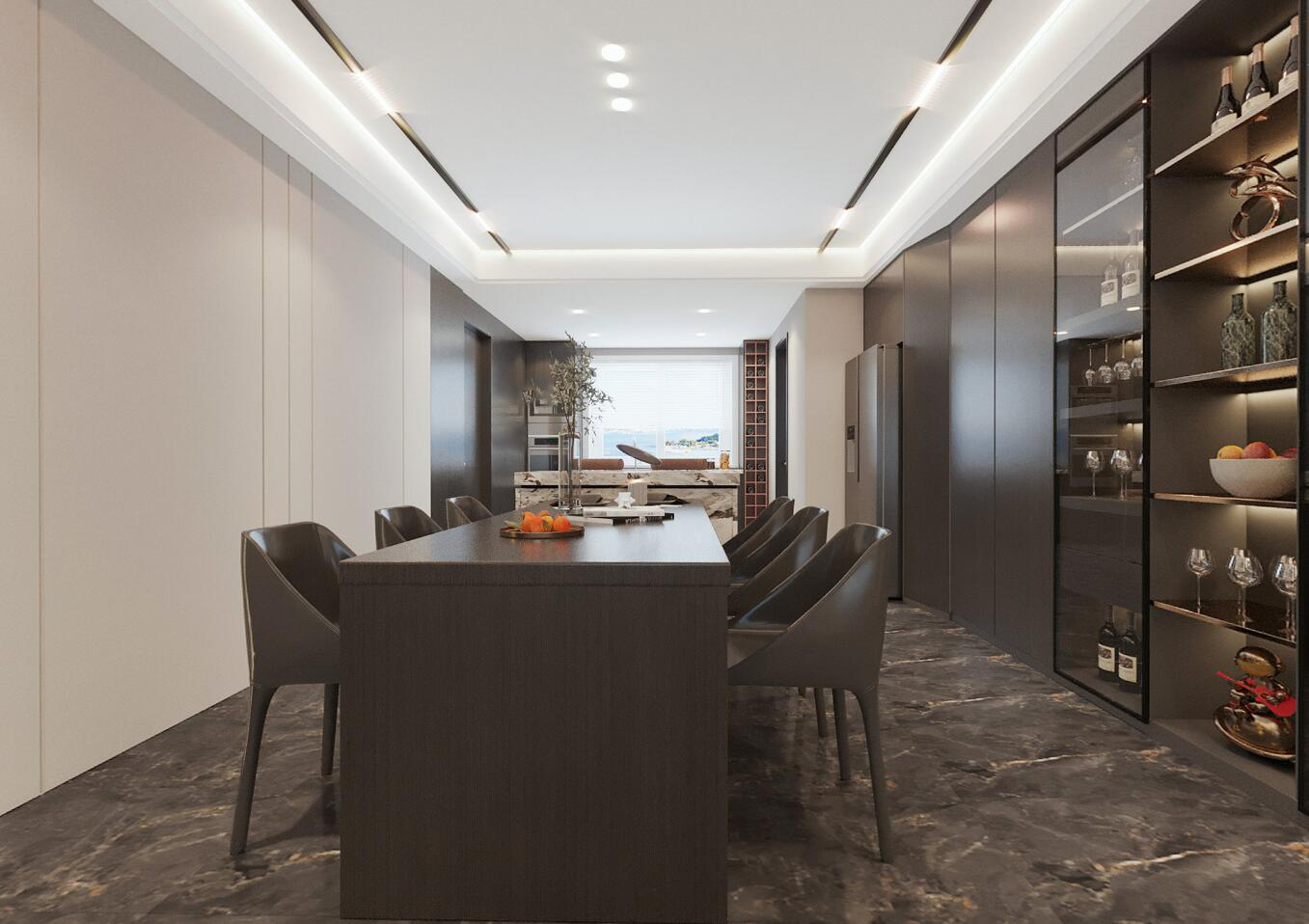 精致的現(xiàn)代風,超多的定制柜子增加空間的收納面積。