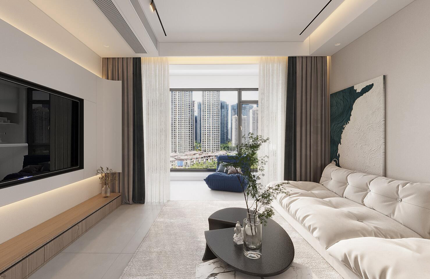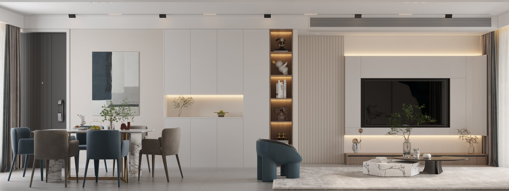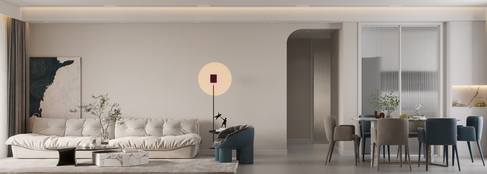 現(xiàn)代風(fēng)格設(shè)計(jì),無主燈的設(shè)計(jì)打造出一個(gè)精致的空間氛圍