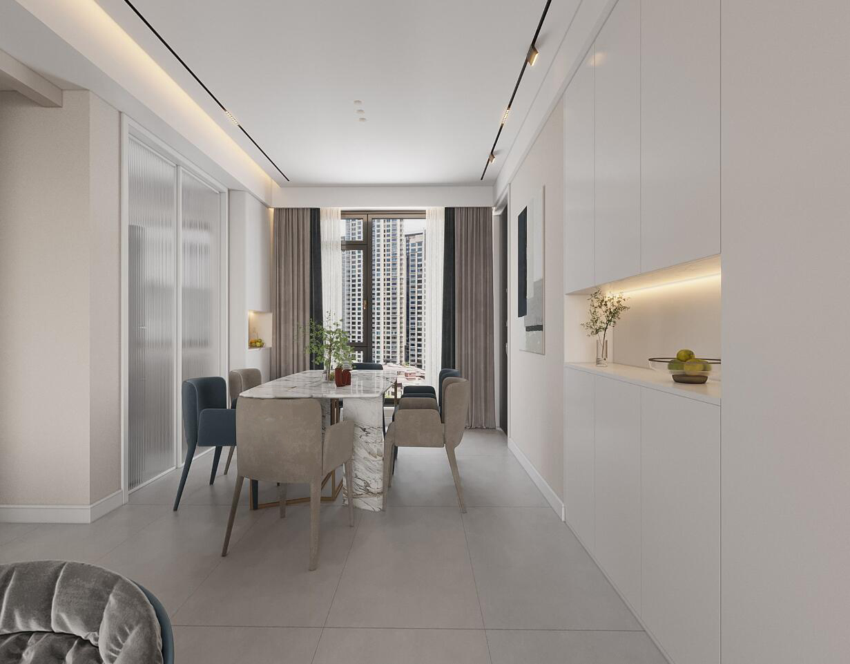 現(xiàn)代風(fēng)格設(shè)計(jì),無主燈的設(shè)計(jì)打造出一個(gè)精致的空間氛圍。