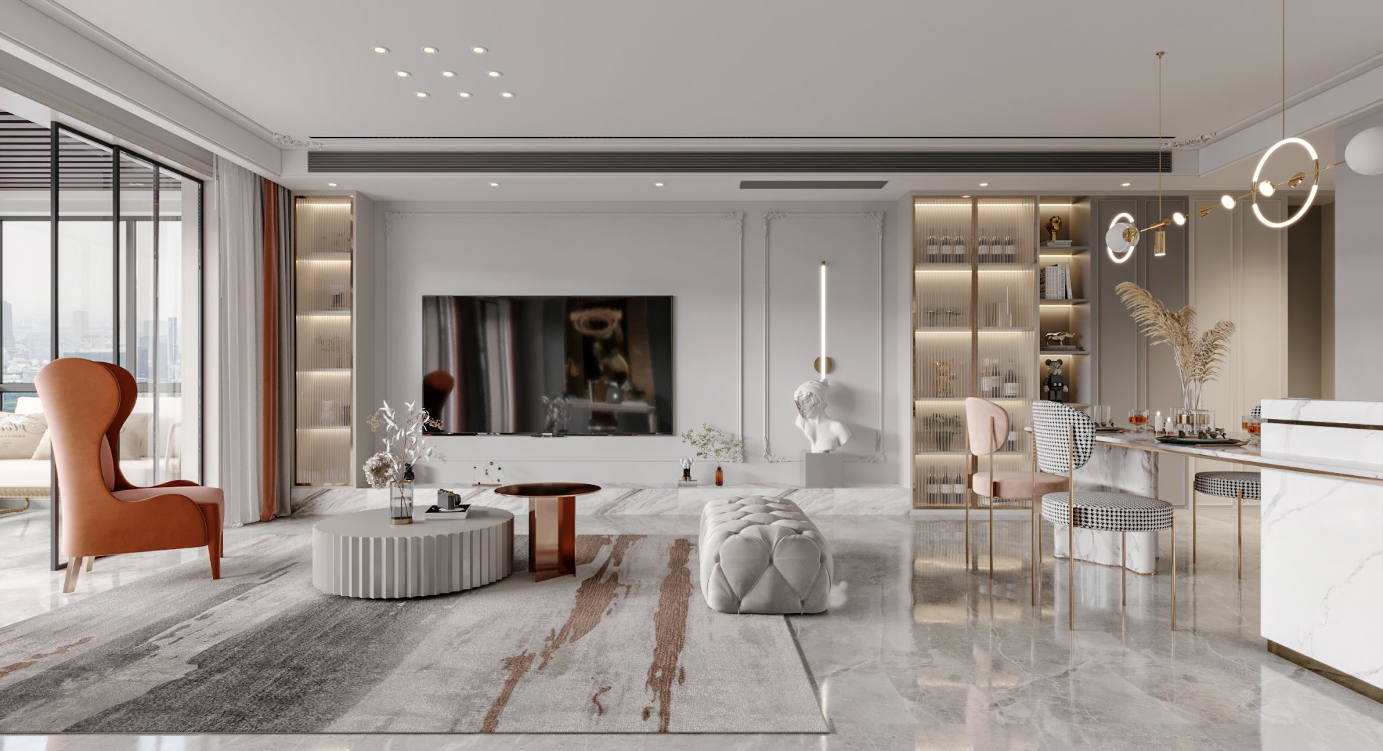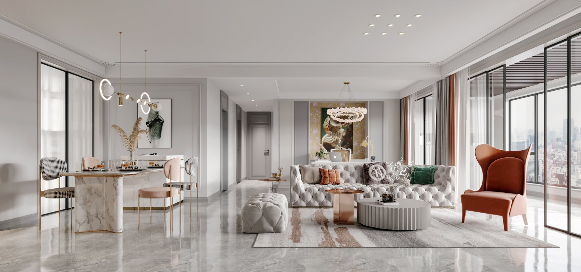 現(xiàn)代風(fēng)格設(shè)計(jì),無(wú)主燈的設(shè)計(jì)打造出一個(gè)精致的空間氛圍