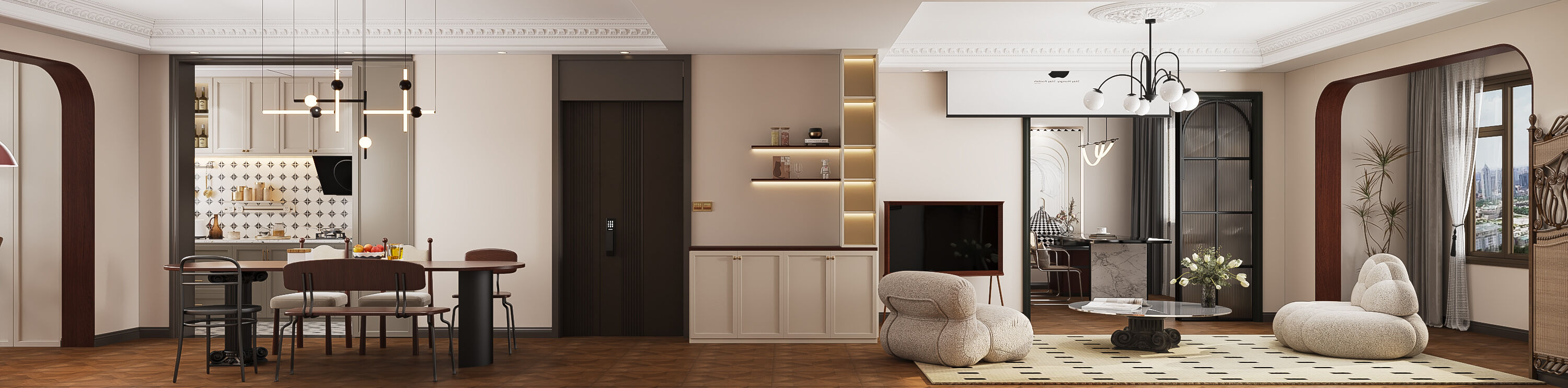 無主燈設計,打造開闊通透簡約四居~