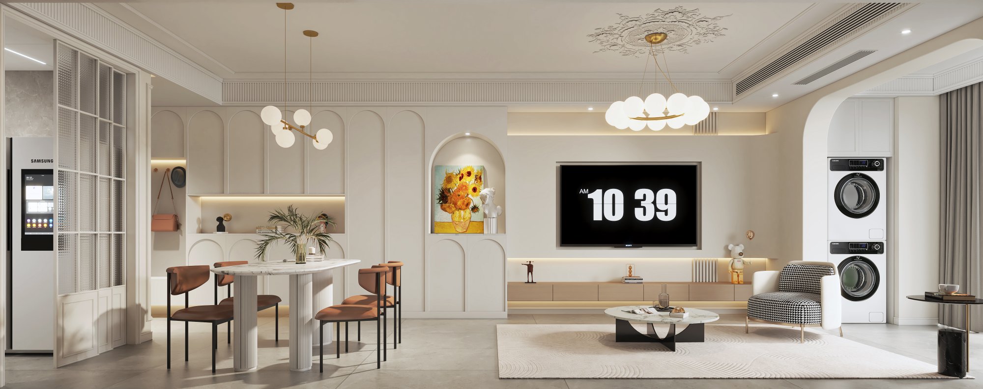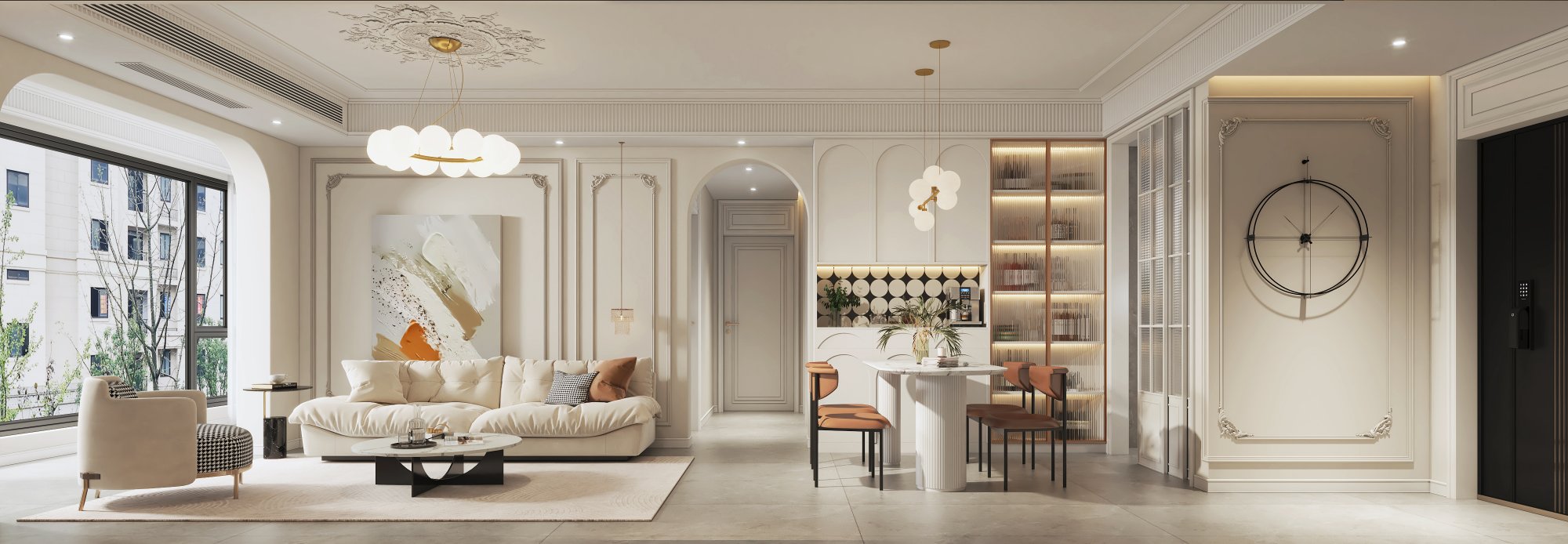 大橫廳布局+暗黑系配色,打造沉穩(wěn)大氣簡約宜居風
