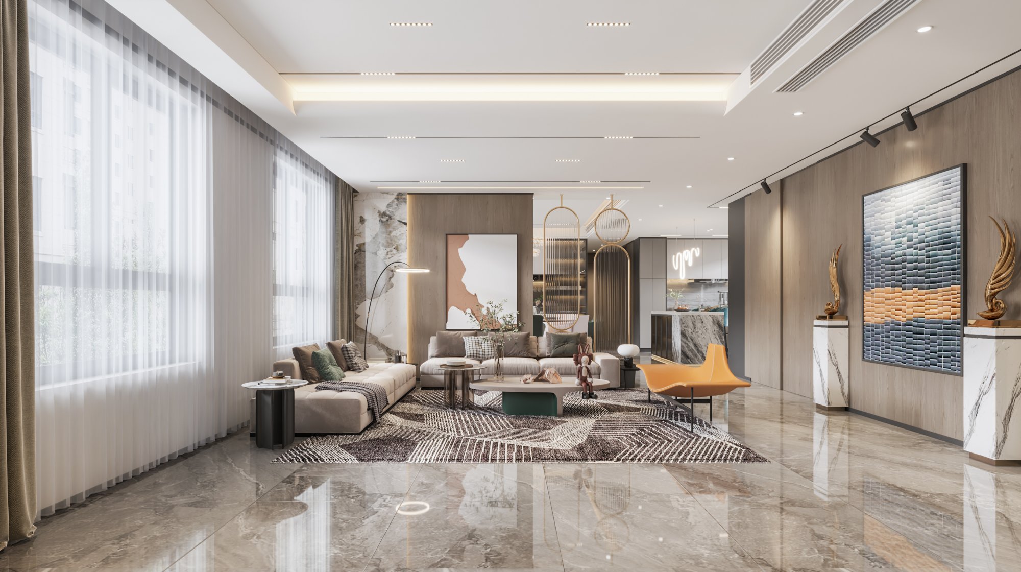 135平現(xiàn)代簡(jiǎn)約,無(wú)主燈設(shè)計(jì)更顯開闊大氣