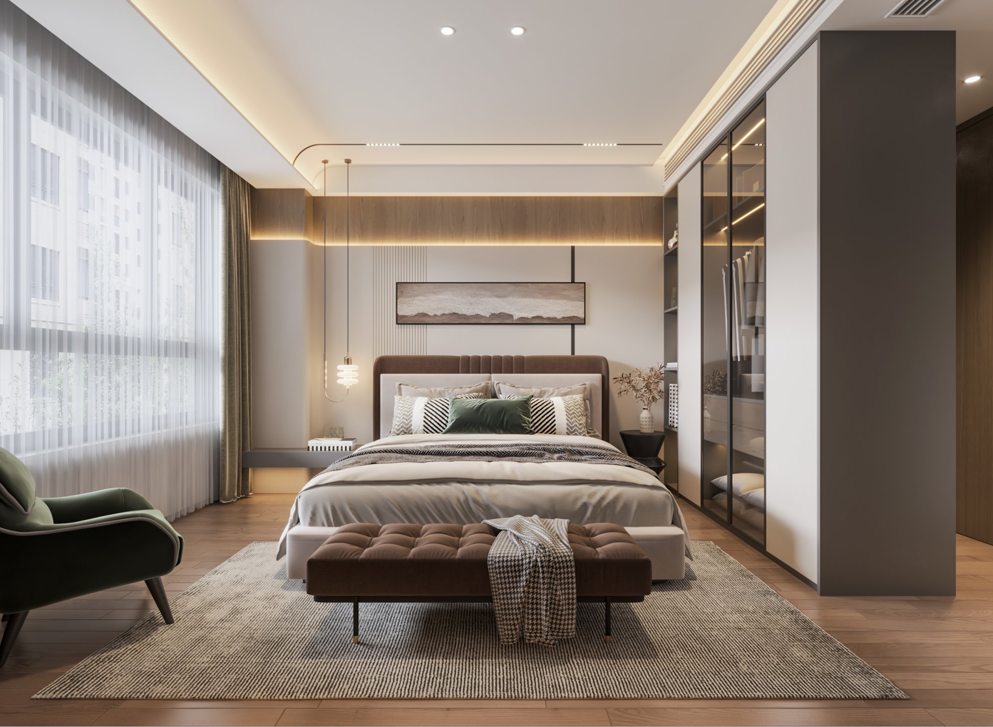 胡桃木配色,打造沉穩(wěn)靜謐簡(jiǎn)約居所
