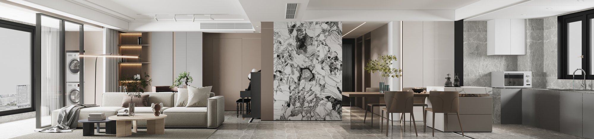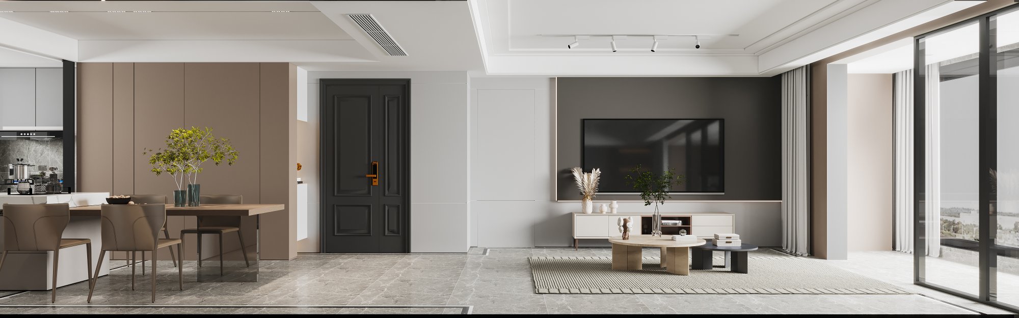 大橫廳布局+暗黑系配色,打造沉穩(wěn)大氣簡約宜居風
