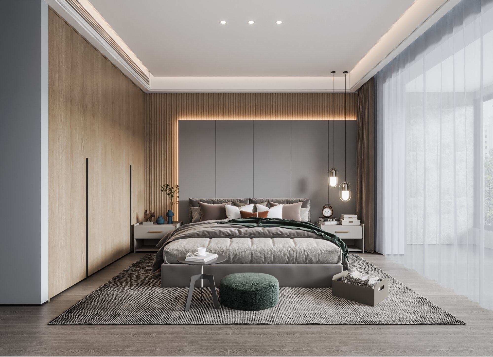 胡桃木配色,打造沉穩(wěn)靜謐簡約居所