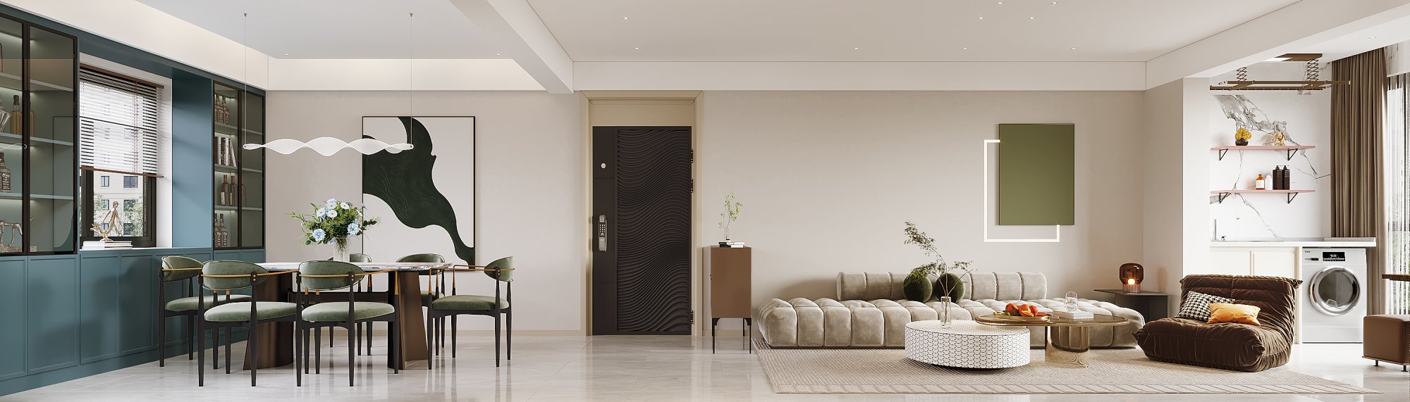 大橫廳布局+暗黑系配色,打造沉穩(wěn)大氣簡約宜居風(fēng)