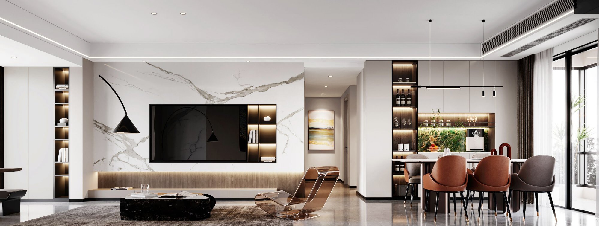大橫廳布局+暗黑系配色,打造沉穩(wěn)大氣簡約宜居風(fēng)