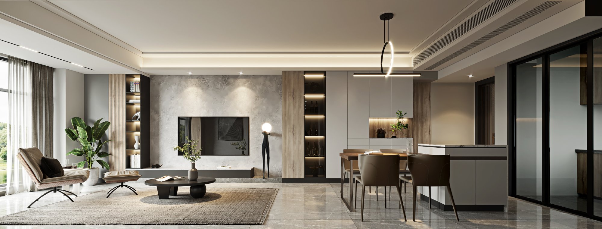 大橫廳布局+暗黑系配色,打造沉穩(wěn)大氣簡約宜居風(fēng)