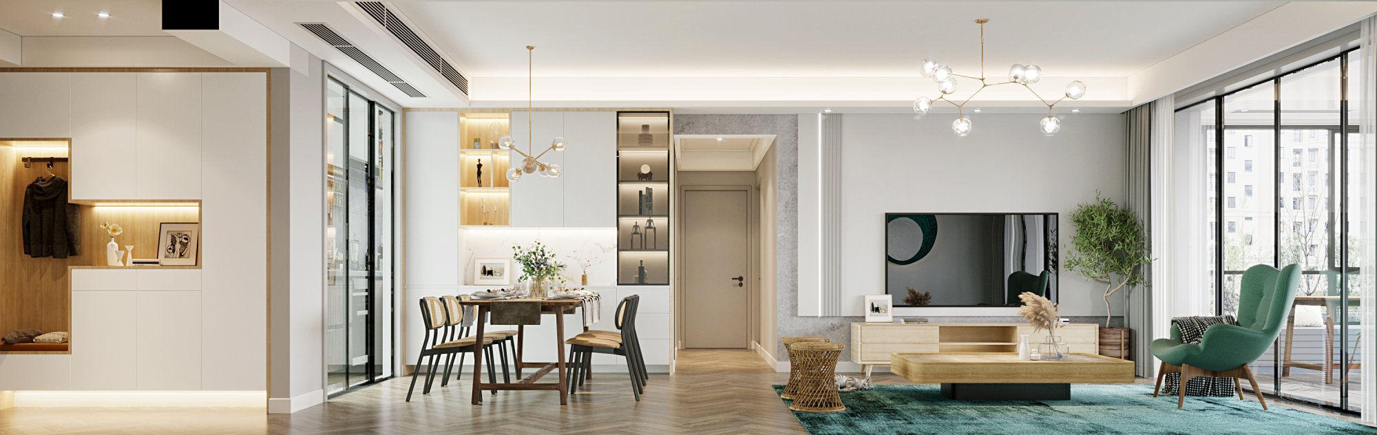 胡桃木配色,打造沉穩(wěn)靜謐簡約居所
