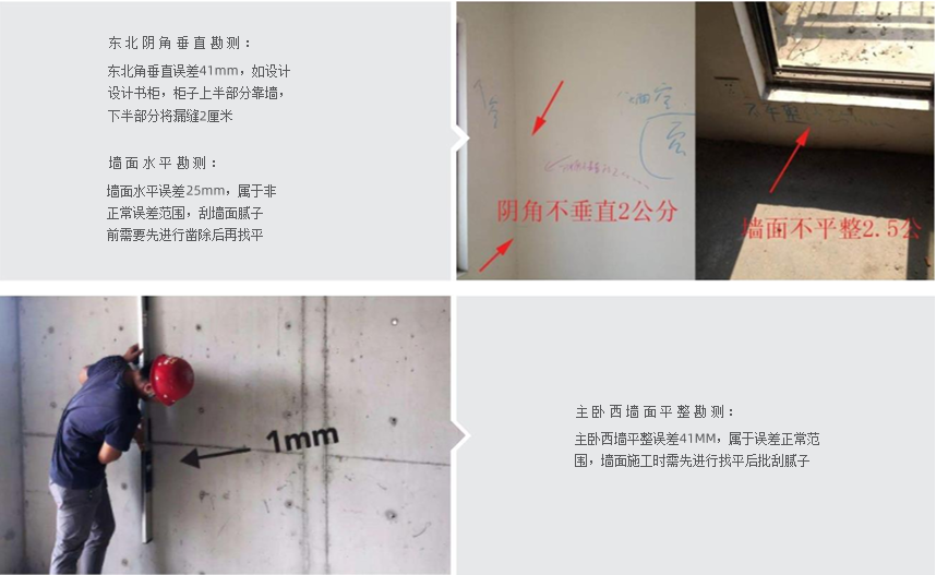 東墻垂直度誤差21MM,下反梁水平誤差20MM
