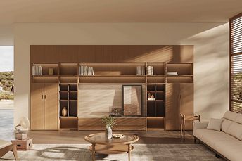 中古風(fēng)配色,復(fù)古電影質(zhì)感。深胡桃木色搭配純粹淺色,明暗對(duì)比手法賦予空間層次感。 中古風(fēng)將古典主義與現(xiàn)代主義相融合,裝飾性與實(shí)用性兼具。 簡(jiǎn)約線條邂逅高雅木紋色彩秩序當(dāng)中,又有自然雅致的氣質(zhì),賦予家居空間獨(dú)特的美感。