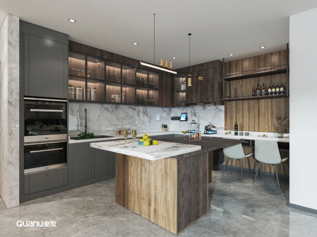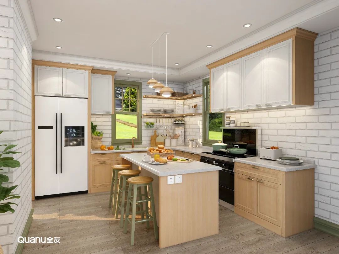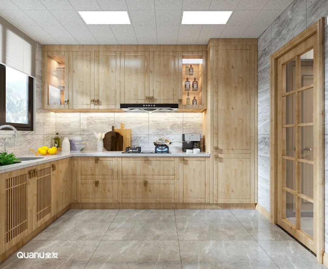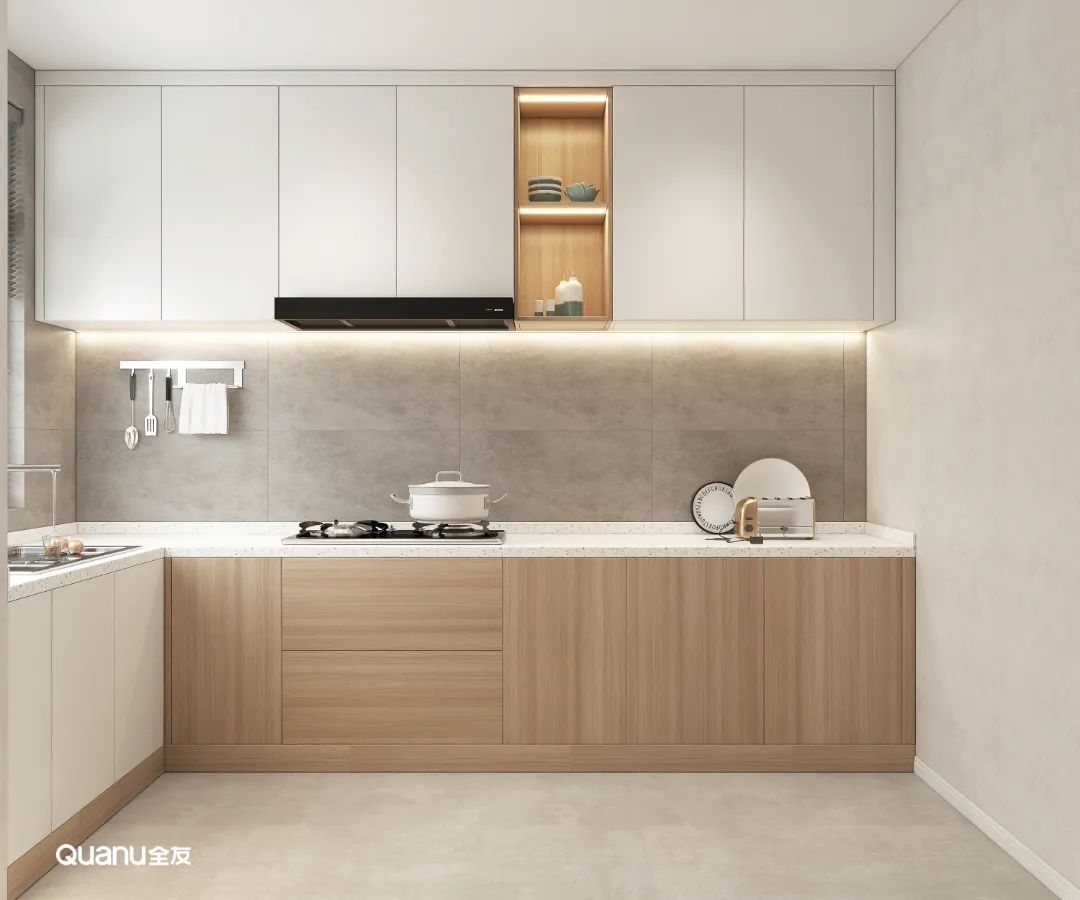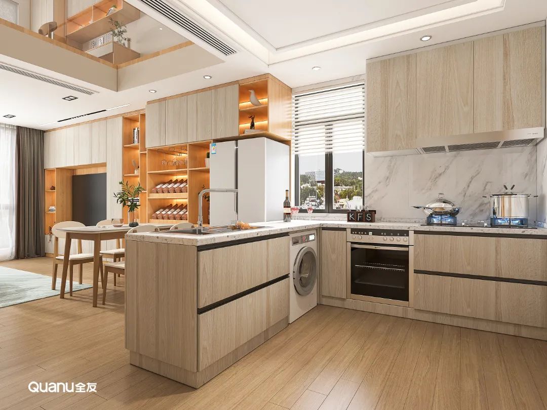 原木色調(diào)自帶自然質(zhì)感,給人以溫馨舒適的視覺感受,廚房設(shè)計(jì)采用原木色系,還可以緩解烹飪所帶來的勞累感,治愈感滿滿。原木風(fēng)格搭配開放式廚房,在這樣的環(huán)境與氛圍中,邀請三五好友一起下廚聚會(huì),何嘗不是一種享受。